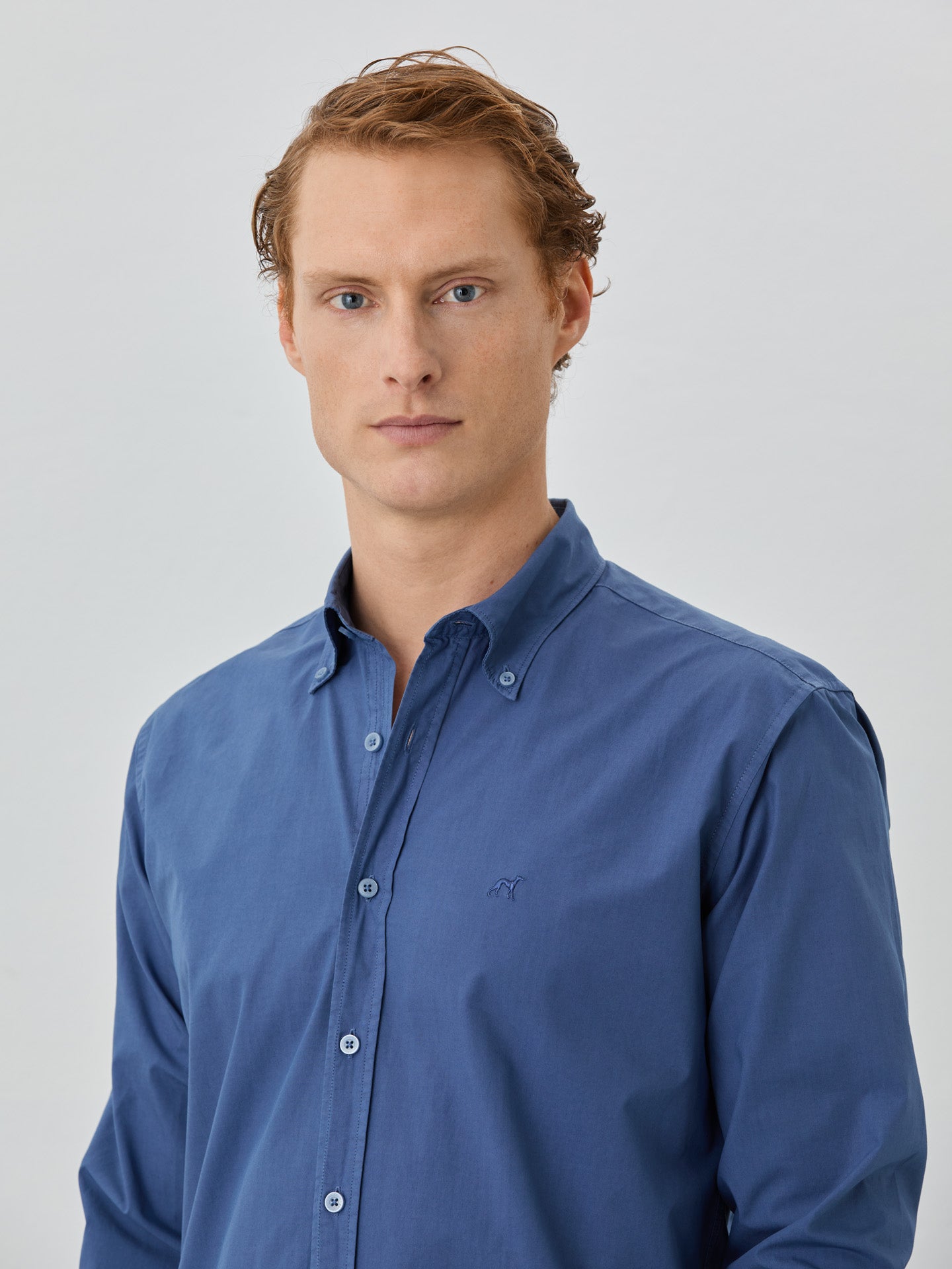 Regular Fit Shirt With Button Down Collar In Poplin Cotton