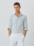 Regular Fit Shirt With Open Collar In BCI Cotton With Stripes