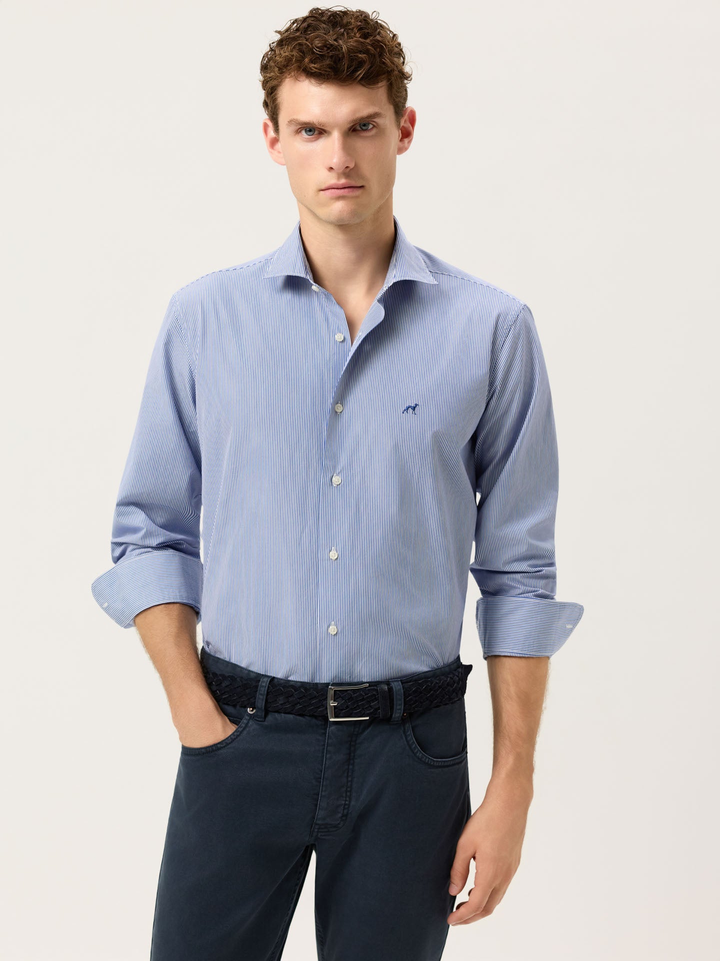 Slim Fit 120’s Cotton Shirt With Refined Stripe Pattern
