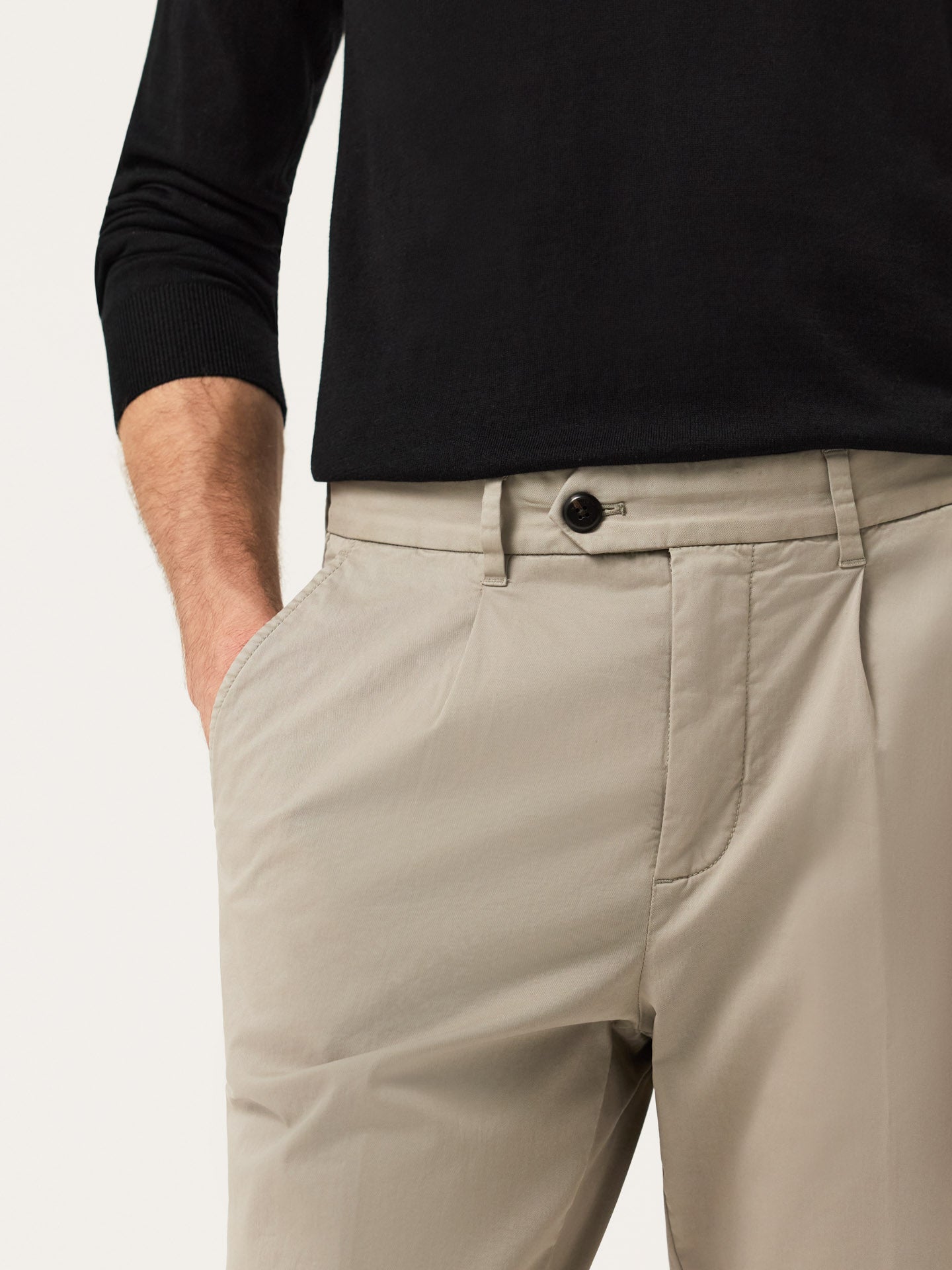 Slim Fit Light Twill Chino With Front Pleat And Garment Dye Finish
