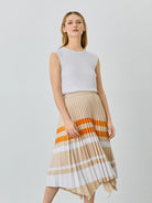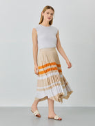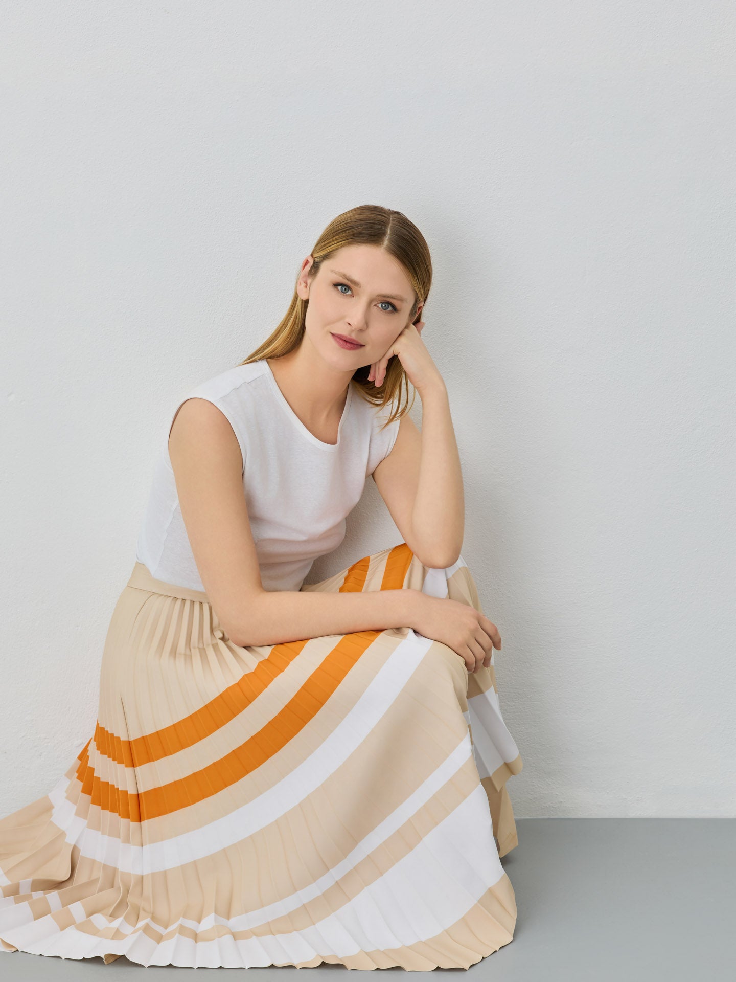 Midi skirt with soleil pleating and printed horrizontal stripes. Fastening throught invisible zipper on back.