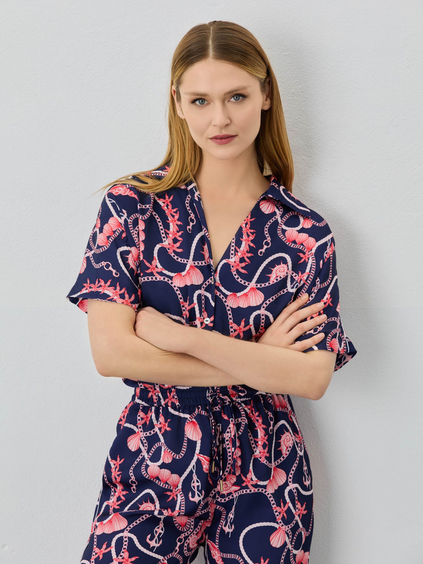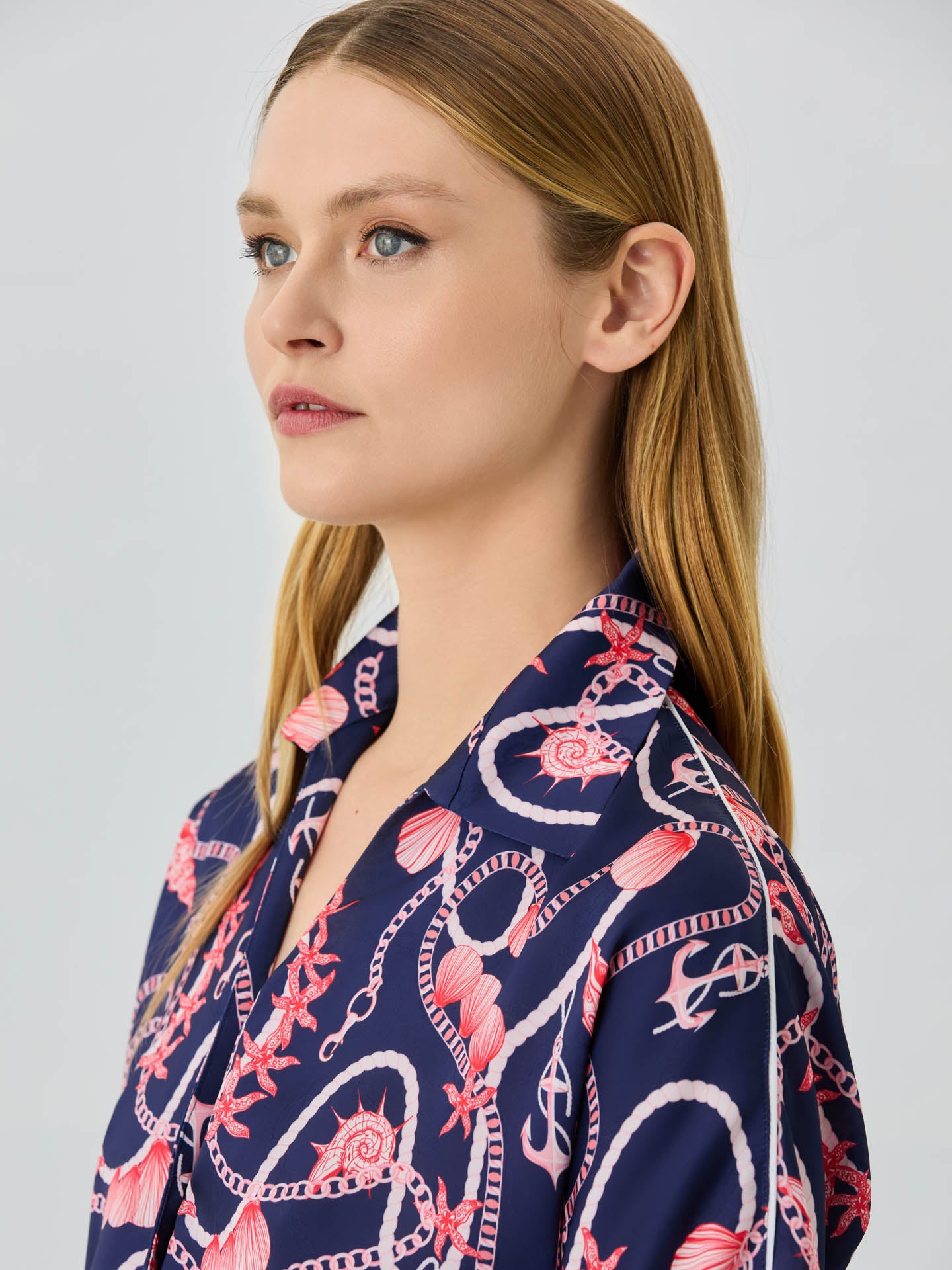 Loose Fit In Satin Blouse With Nautical Print
