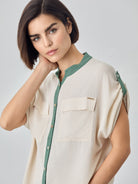 Mao Open Collar Blouse In Rayon Rustic Fabric