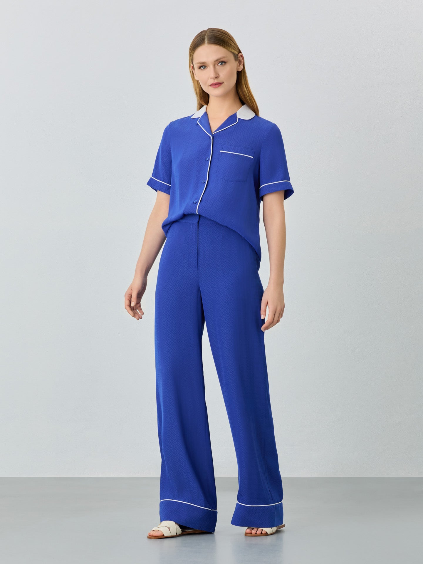 Wide Leg Trousers In Eco Viscose Blend Jarquard Fabric