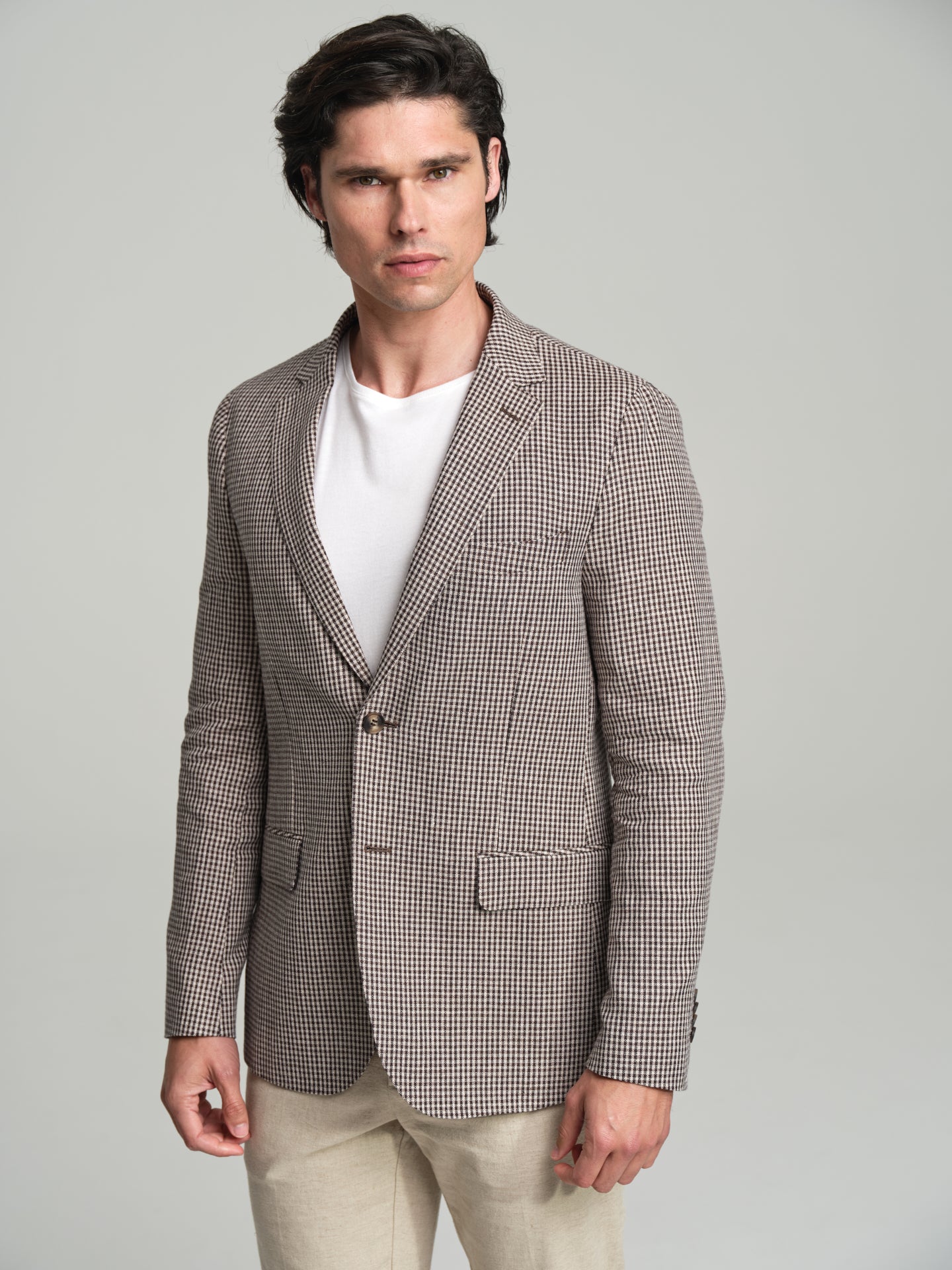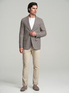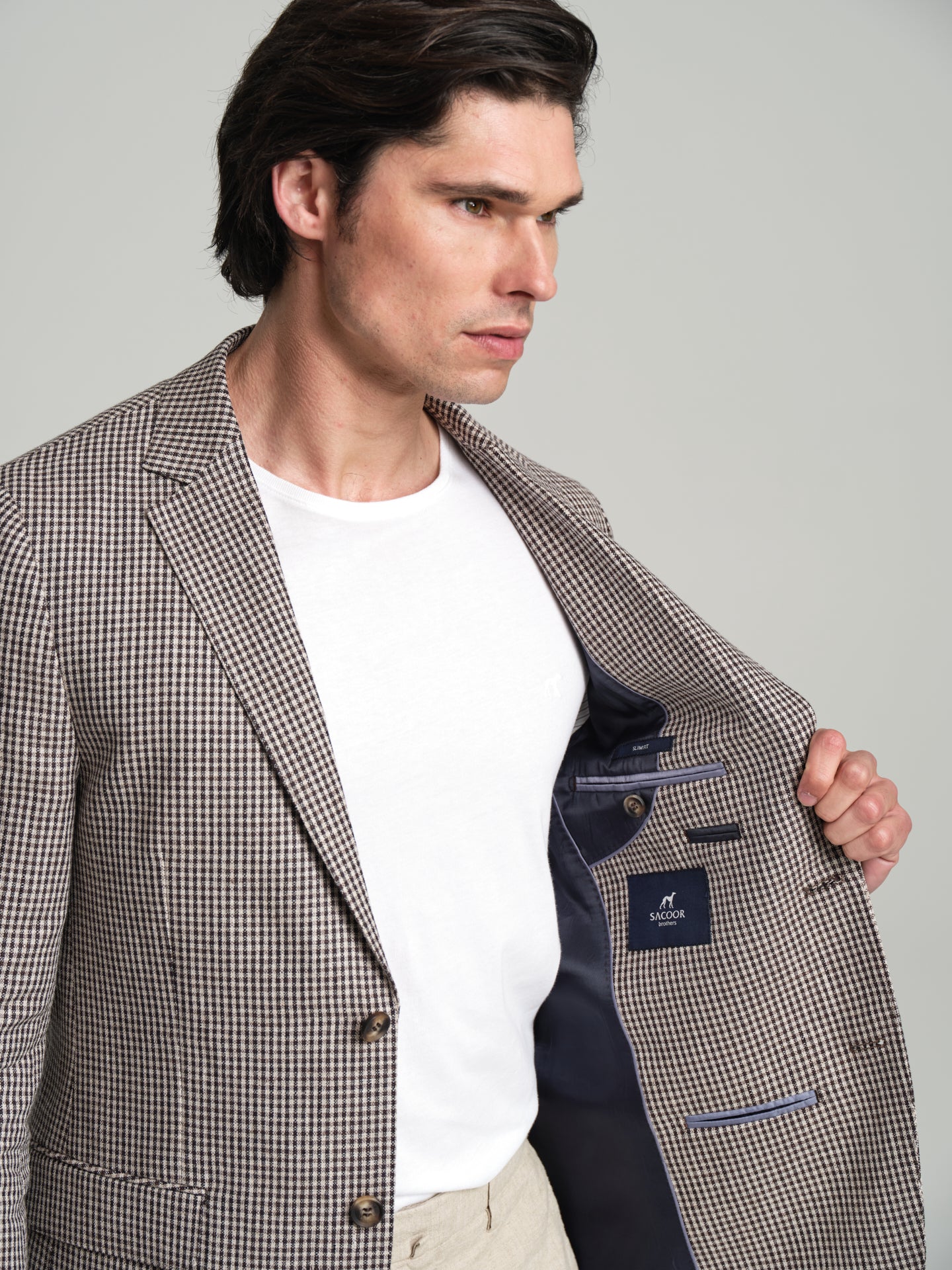 The men's suits from Sacoor Brothers are available with 'Drop 5' and 'Drop 6'. This designation refers to the difference between the blazer size and the trouser size. When ordering a size 46 with 'Drop 5', the trousers will be around size 41, while 'Drop 6' will result in trousers of size 40.