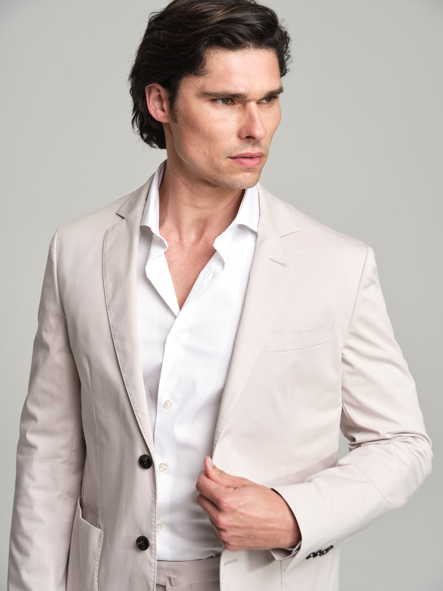 The men's suits from Sacoor Brothers are available with 'Drop 5' and 'Drop 6'. This designation refers to the difference between the blazer size and the trouser size. When ordering a size 46 with 'Drop 5', the trousers will be around size 41, while 'Drop 6' will result in trousers of size 40.