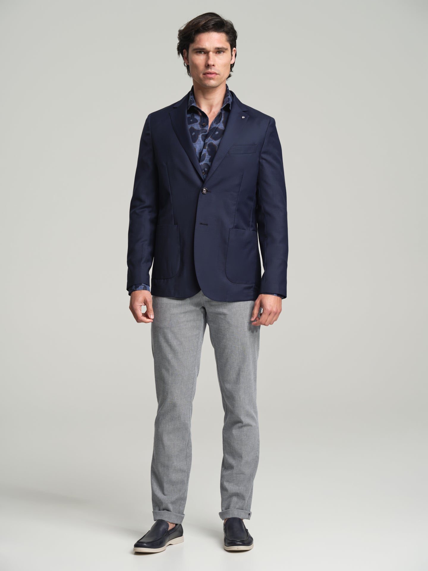 The men's suits from Sacoor Brothers are available with 'Drop 5' and 'Drop 6'. This designation refers to the difference between the blazer size and the trouser size. When ordering a size 46 with 'Drop 5', the trousers will be around size 41, while 'Drop 6' will result in trousers of size 40.