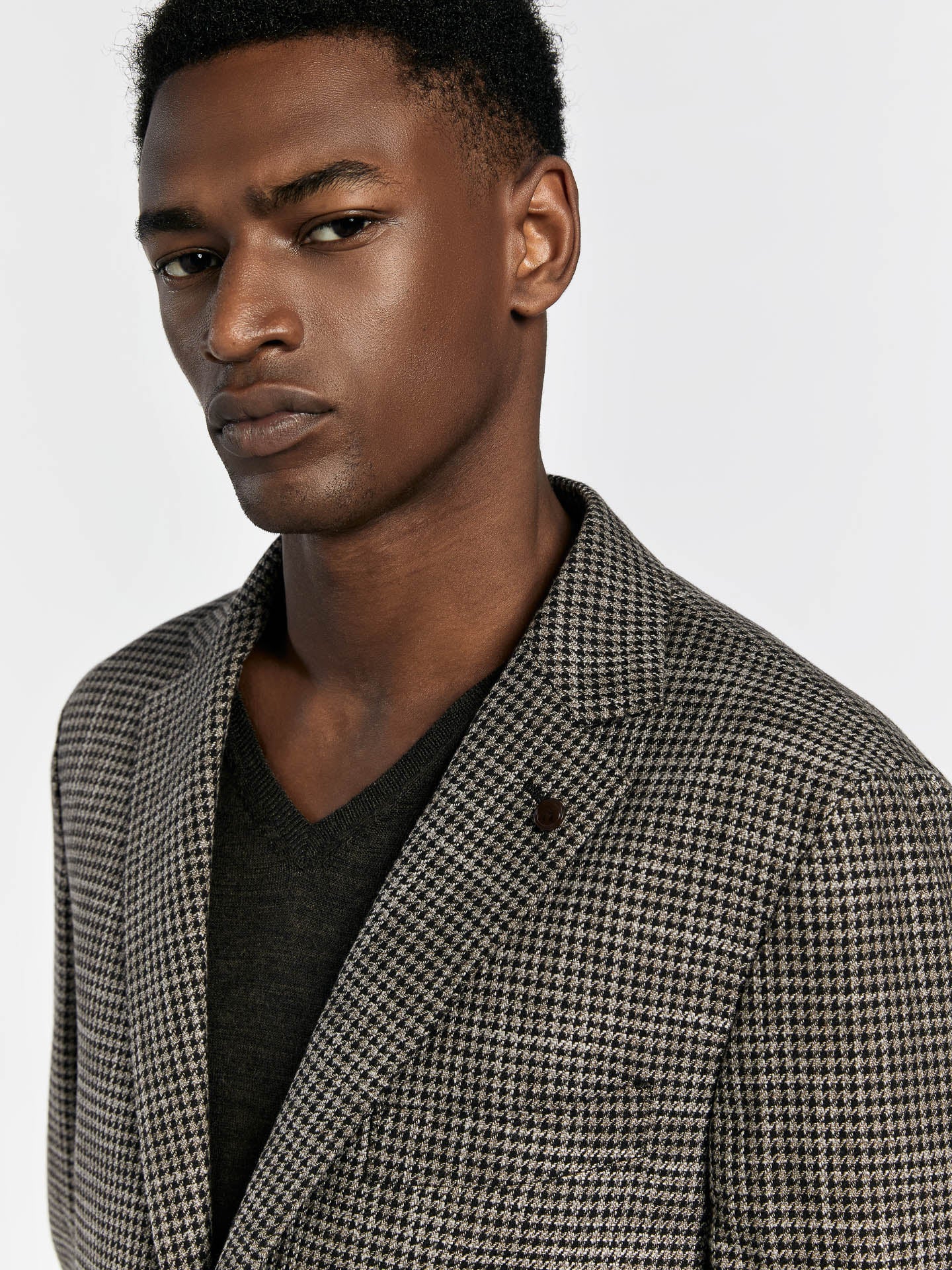 The men's suits from Sacoor Brothers are available with 'Drop 5' and 'Drop 6'. This designation refers to the difference between the blazer size and the trouser size. When ordering a size 46 with 'Drop 5', the trousers will be around size 41, while 'Drop 6' will result in trousers of size 40.