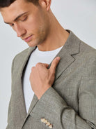 Half-Canvas Prince Of Wales Blazer With Patch Pockets In Linen Blend