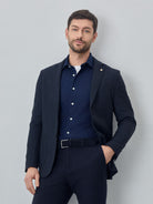 The men's suits from Sacoor Brothers are available with 'Drop 5' and 'Drop 6'. This designation refers to the difference between the blazer size and the trouser size. When ordering a size 46 with 'Drop 5', the trousers will be around size 41, while 'Drop 6' will result in trousers of size 40.