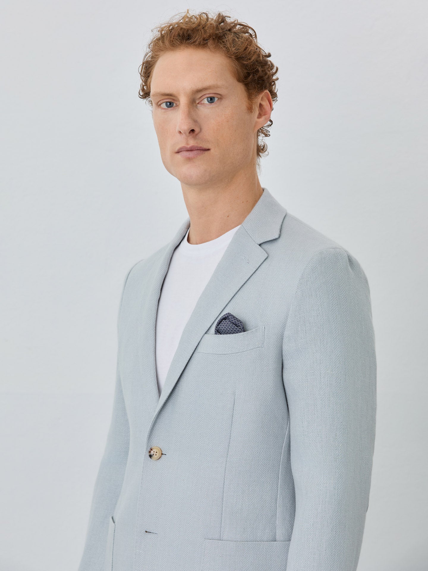 Unstructured Herringbone Blazer With Patch Pockets In Linen