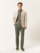 The men's suits from Sacoor Brothers are available with 'Drop 5' and 'Drop 6'. This designation refers to the difference between the blazer size and the trouser size. When ordering a size 46 with 'Drop 5', the trousers will be around size 41, while 'Drop 6' will result in trousers of size 40.
