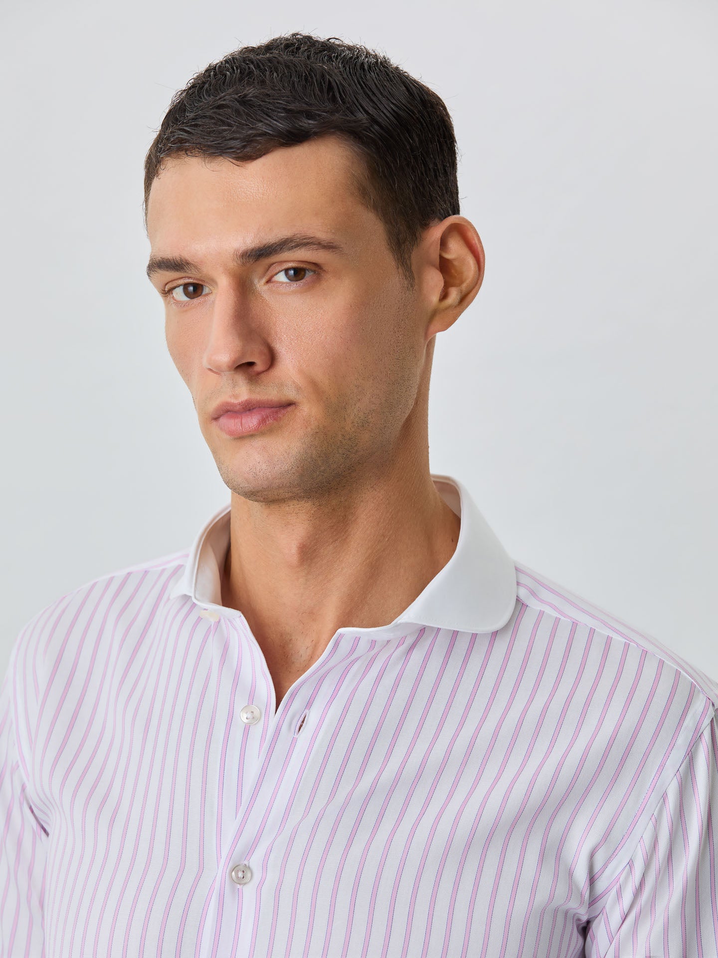 Slim Fit Shirt With Manchester Collar In Cotton With Stripes
