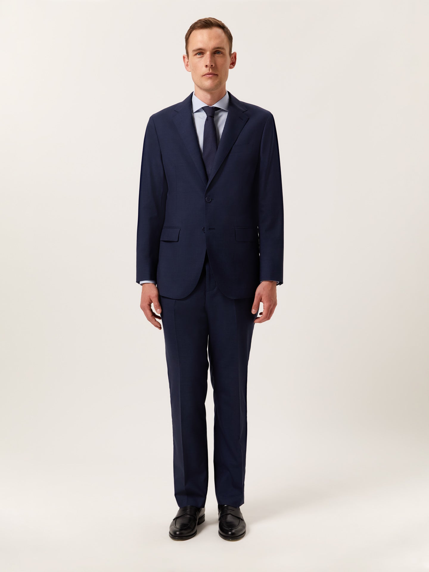 The men's suits from Sacoor Brothers are available with 'Drop 5' and 'Drop 6'. This designation refers to the difference between the blazer size and the trouser size. When ordering a size 46 with 'Drop 5', the trousers will be around size 41, while 'Drop 6' will result in trousers of size 40.