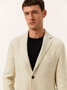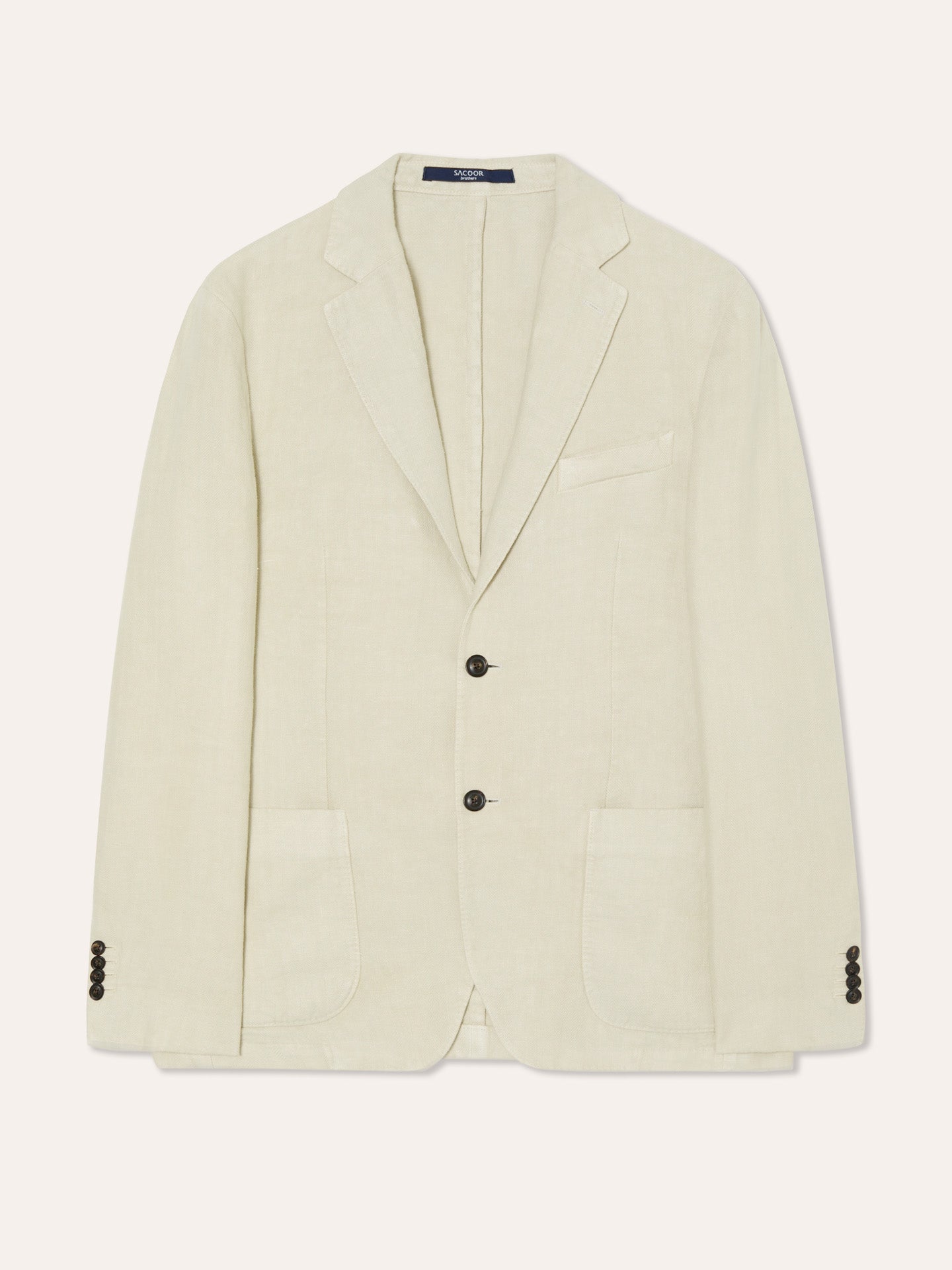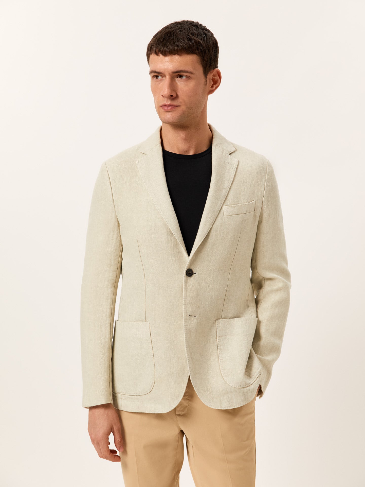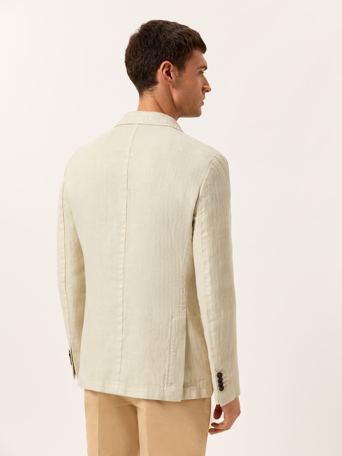 Slim Fit Garment Dye Herringbone Blazer in 100% Linen