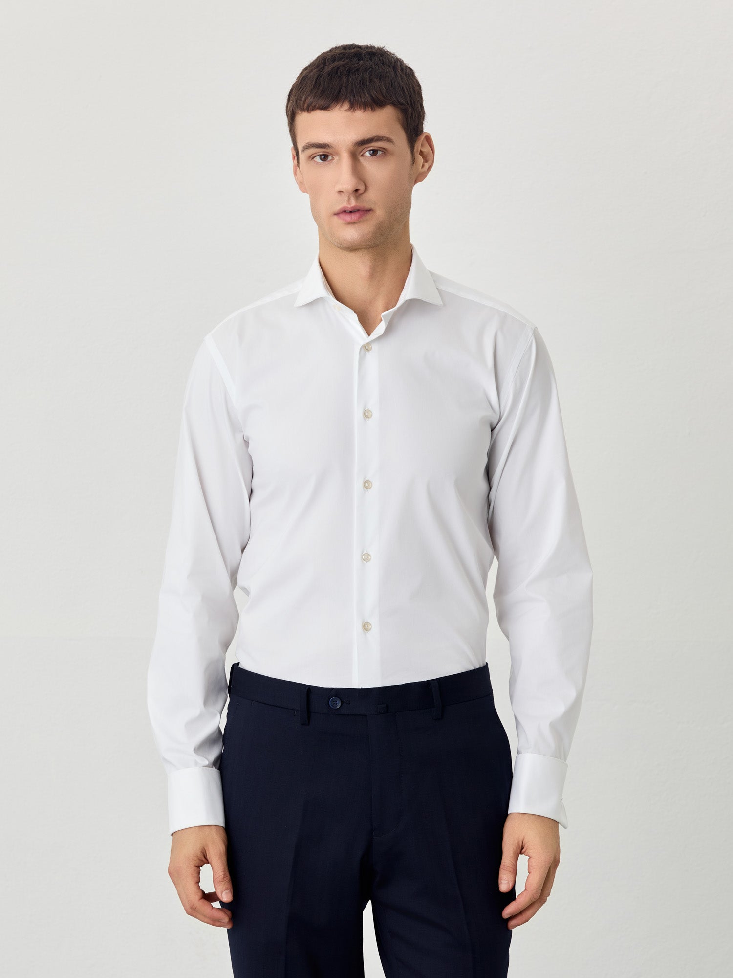 Slim Fit Travel Poplin Shirt with double cuff in Comfort Cotton