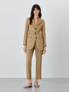 Single-Breasted Suit Blazer In Viscose Linen Blend With Belt