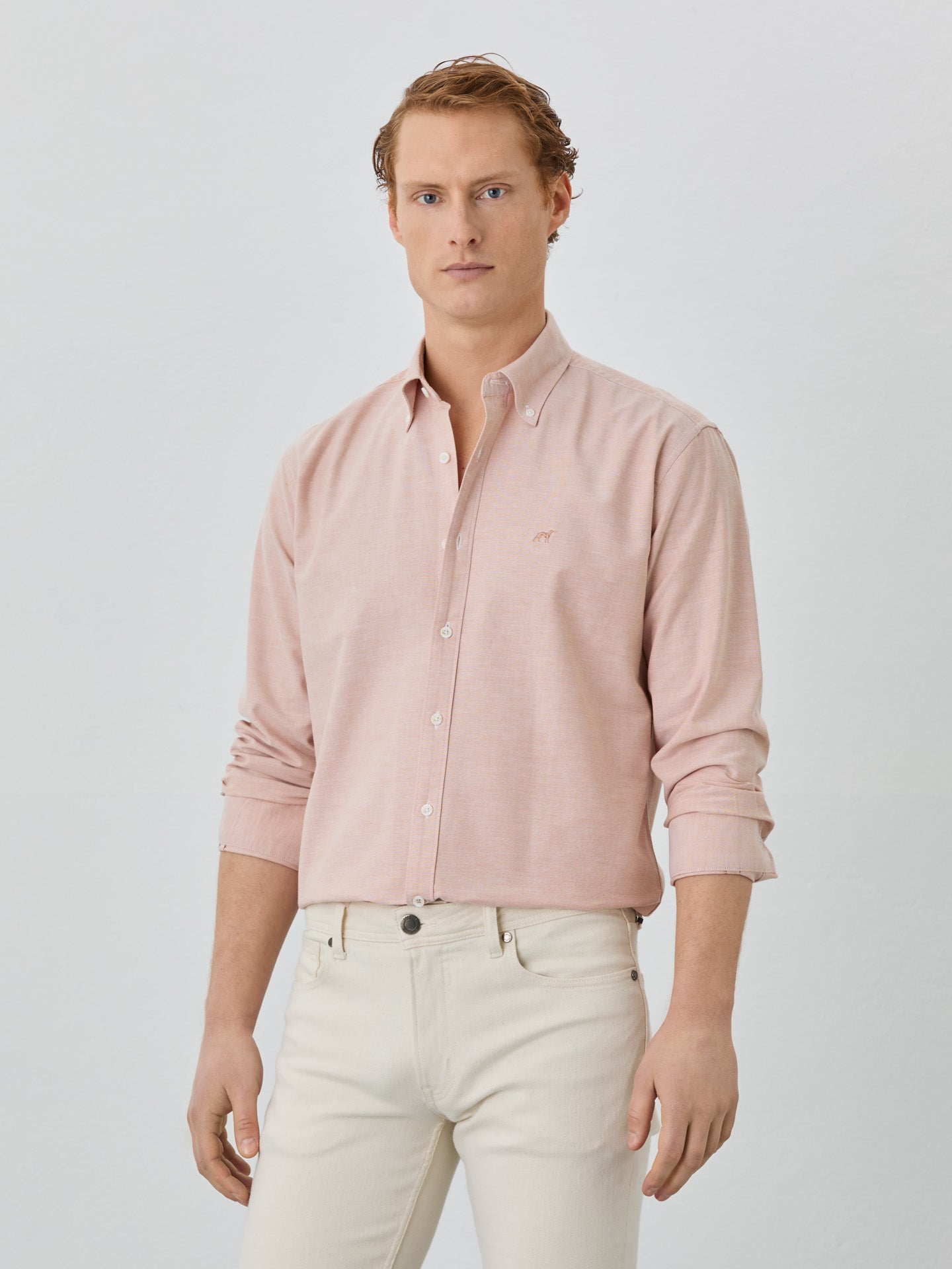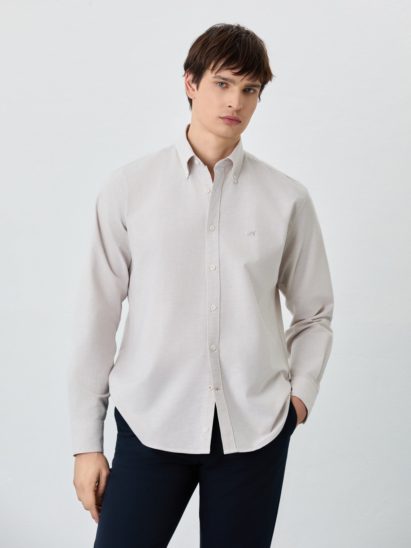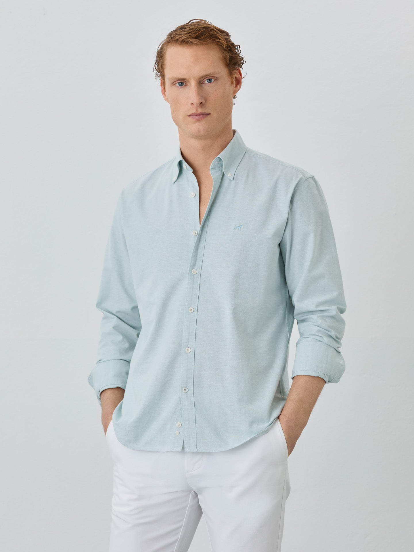 Regular Fit Shirt With Button Down Collar In Cotton-Elastane Blend