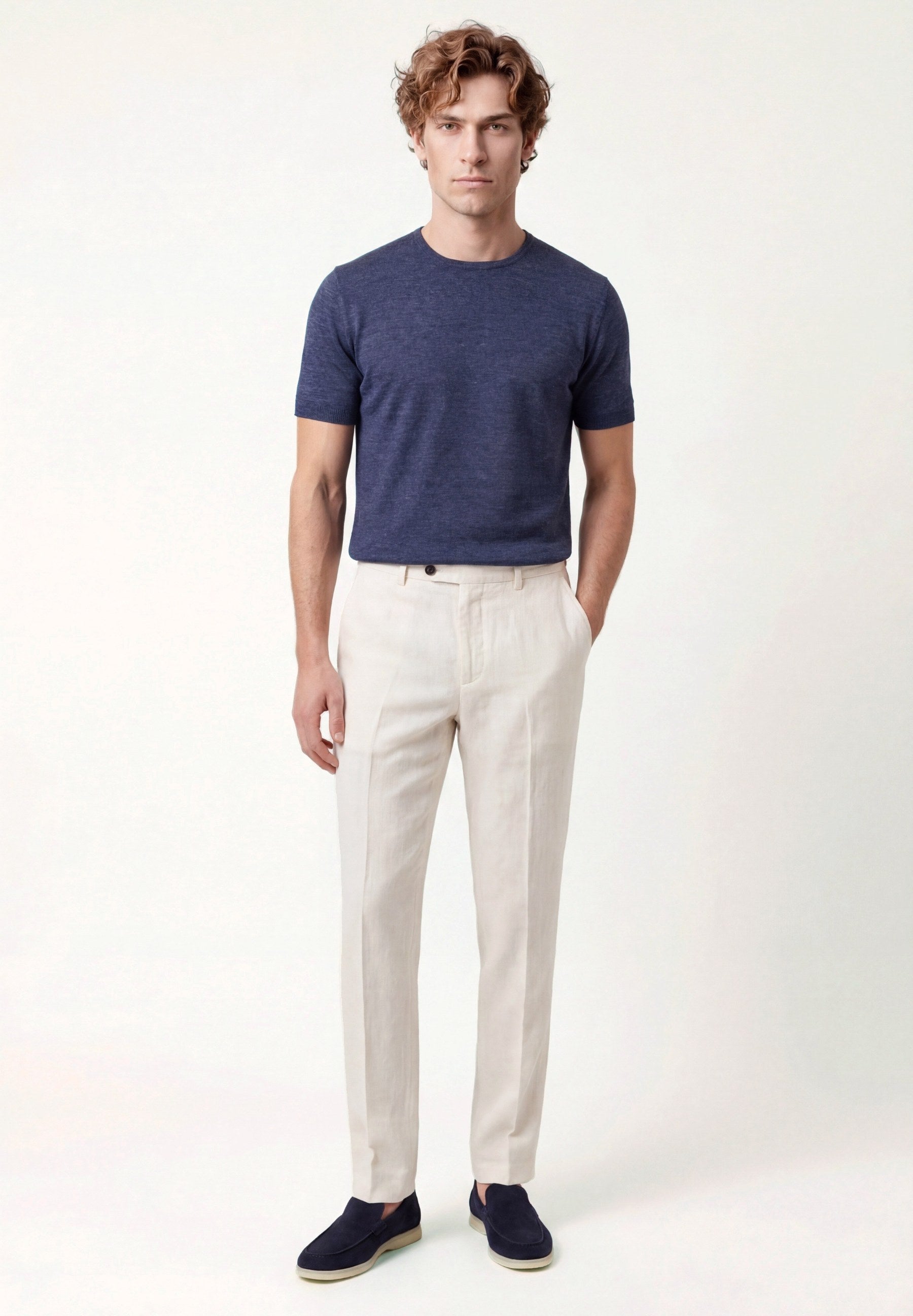 Short Sleeve Crew Neck Sweater In Pure Linen