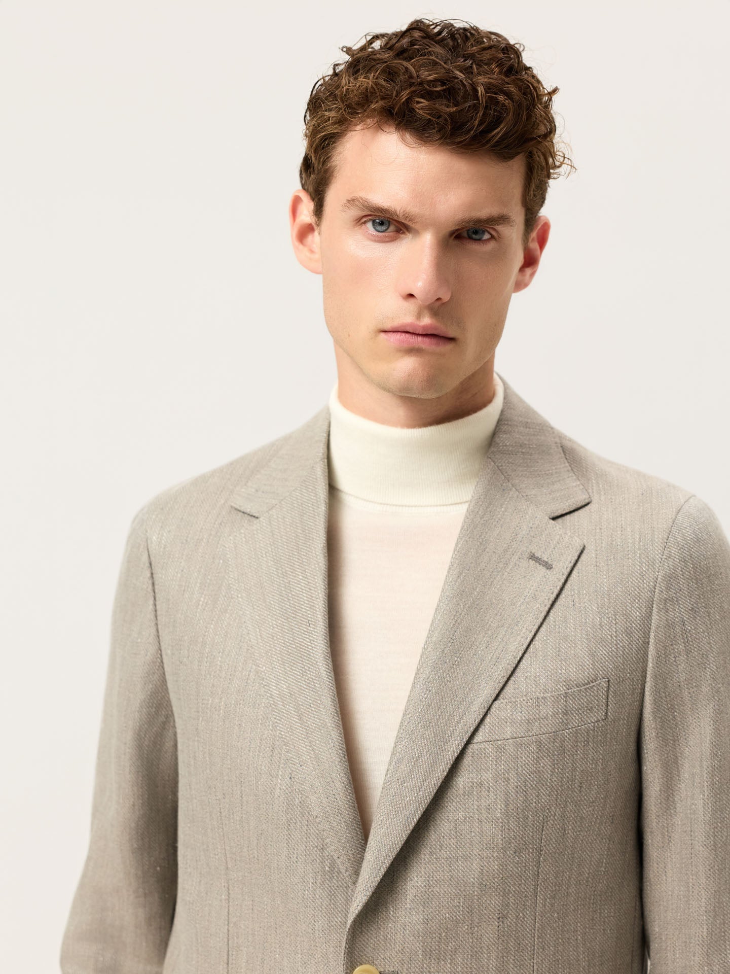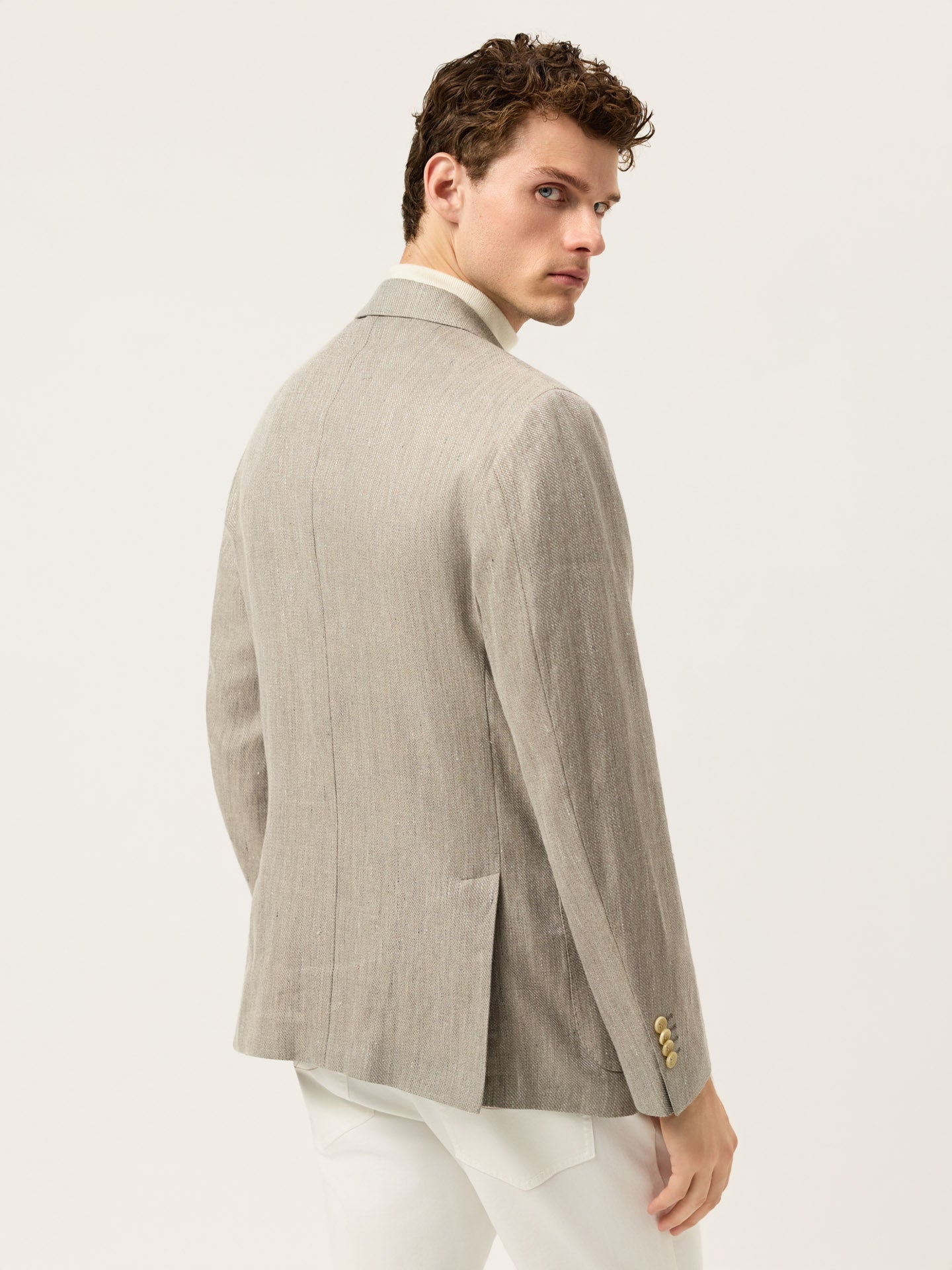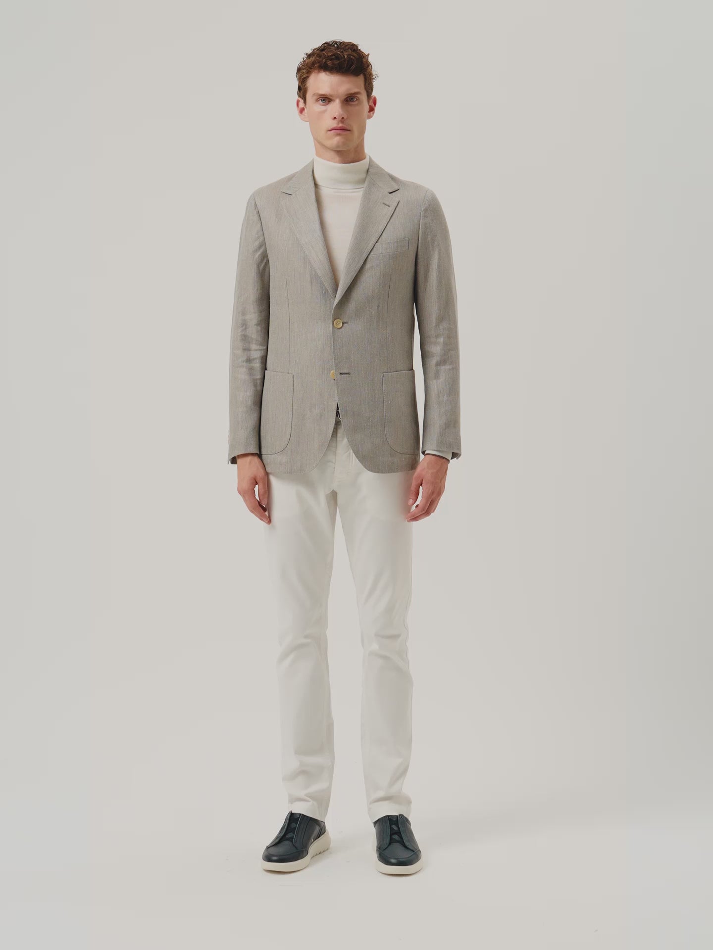 Structured Linen Blend Blazer With Patch Pockets
