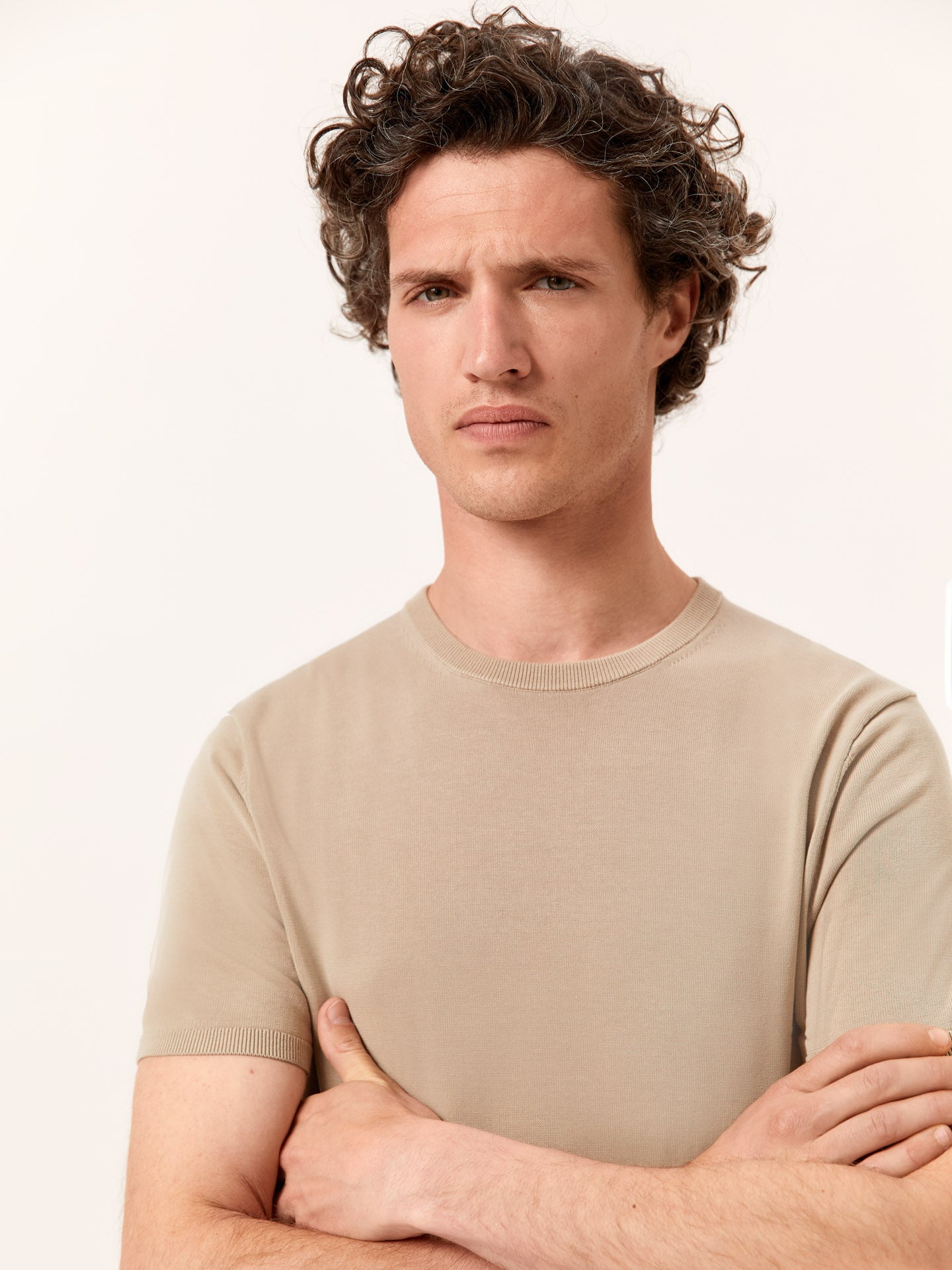 Crew Neck Sweater With Short Sleeves In Cotton and Silk Blend