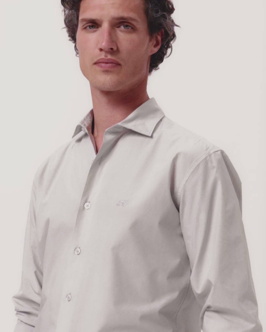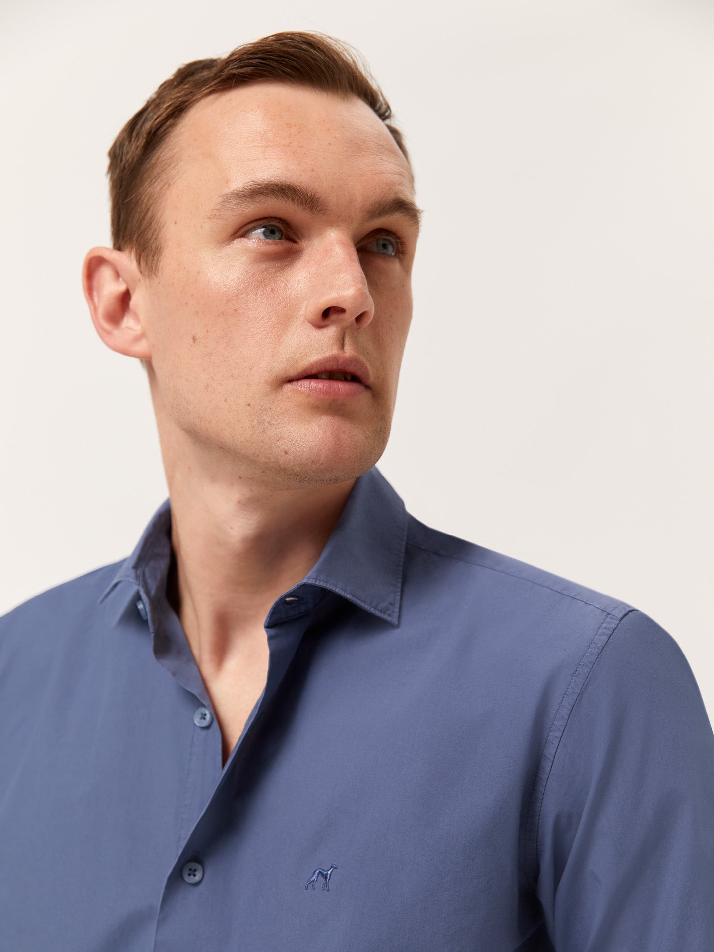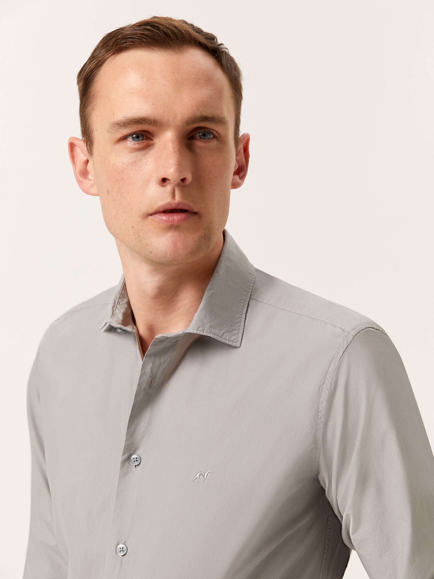 Slim Fit Overdye Poplin Shirt with Open Collar