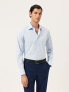 Slim Fit Striped Travel Shirt With Oxford Collar