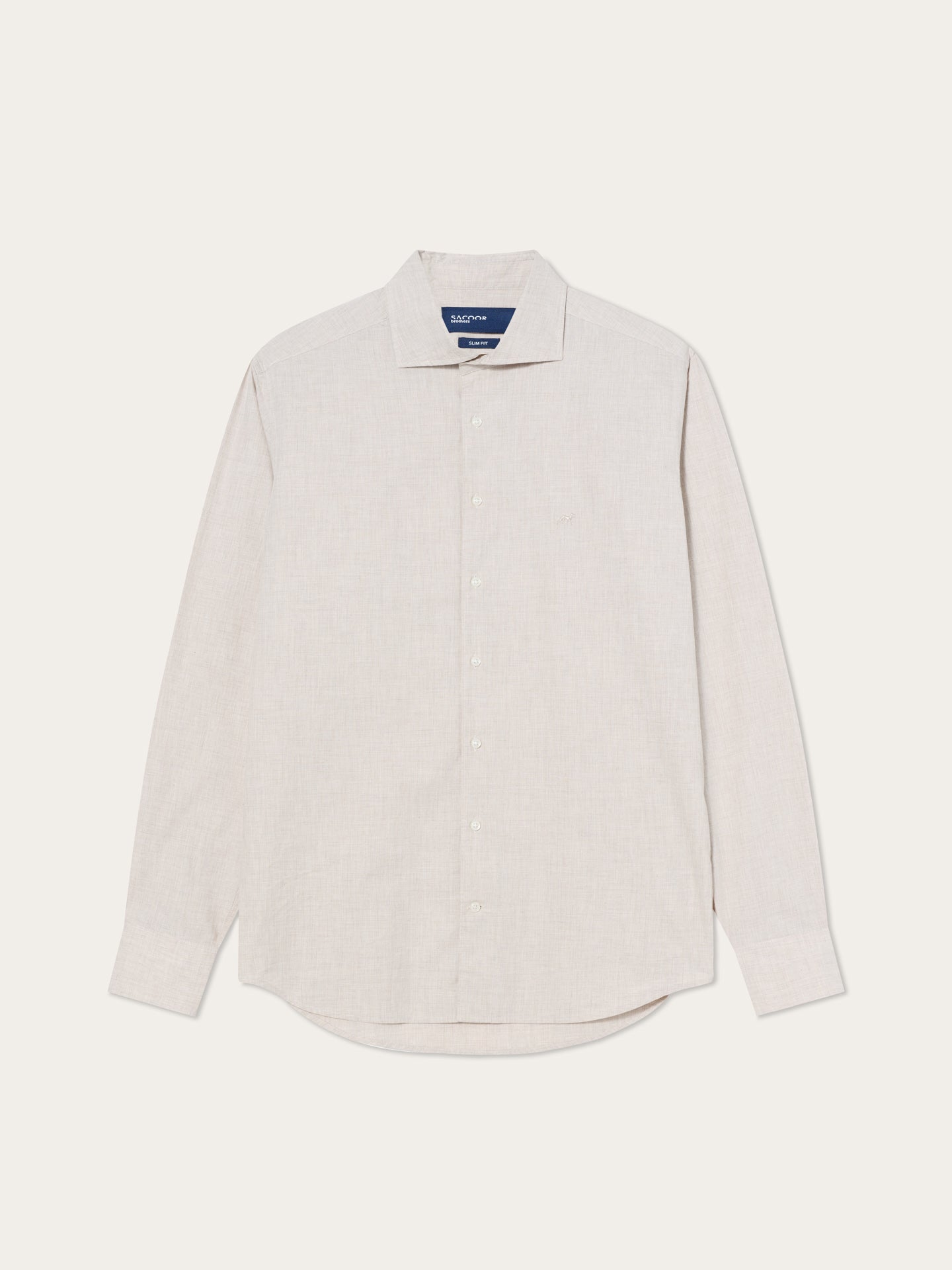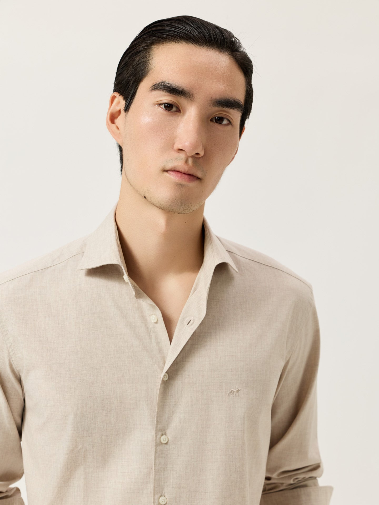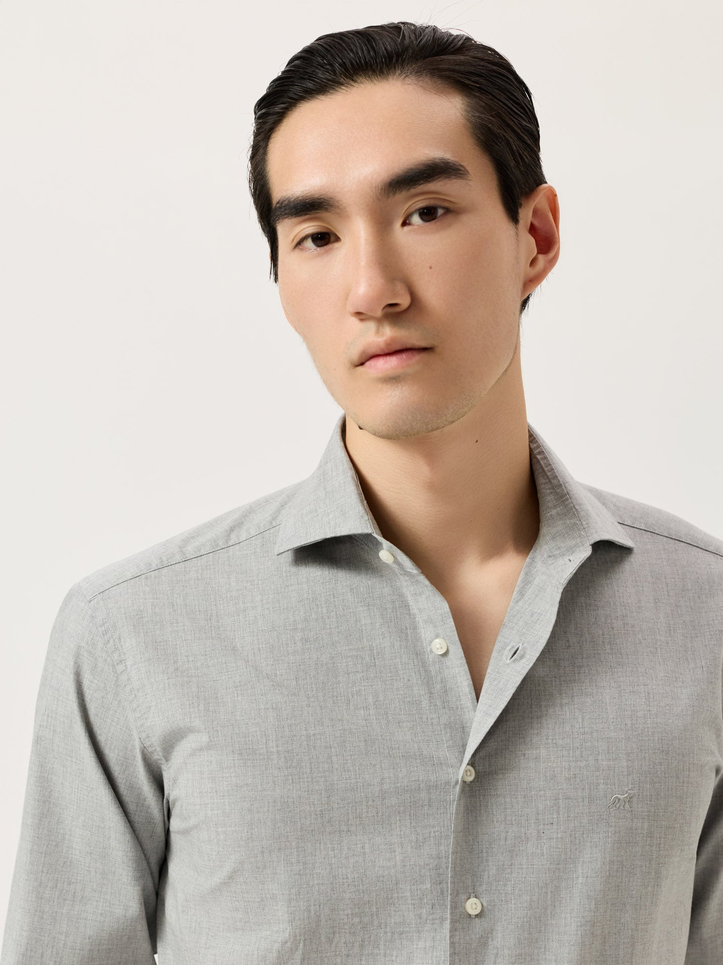 Slim Fit Mélange Poplin Cotton Shirt With Newport Collar