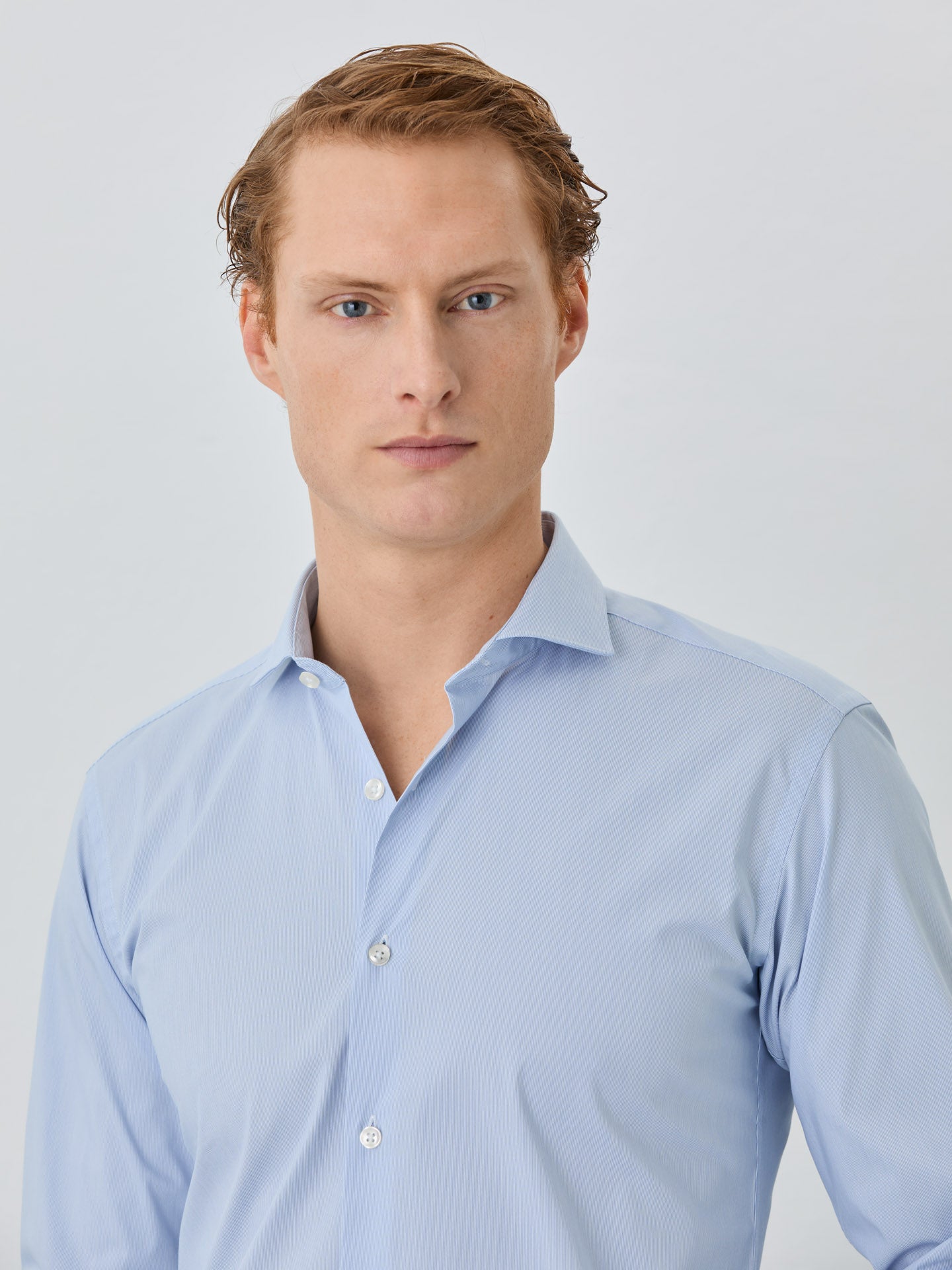 K-Easy line shirt in plain comfort cotton poplin. Fabric made of blended cotton with added polyester and spandex fibres mean every shirt can offer perfect comfort and an excellent fit, the top-performance yarns guarantee excellent elasticity, breathability, and shine. Featuring slim fit, Dublin collar and front button-up fastening. Long sleeves with single cuffs with 2 buttons. Side gussets in self fabric. All shirts have regular fitting measures from size 44. This shirt is ideal for office wear and for those situations when looking impeccable is essential. Shirts for every occasion. Once you’ve tried them, you’ll never want to take them off.