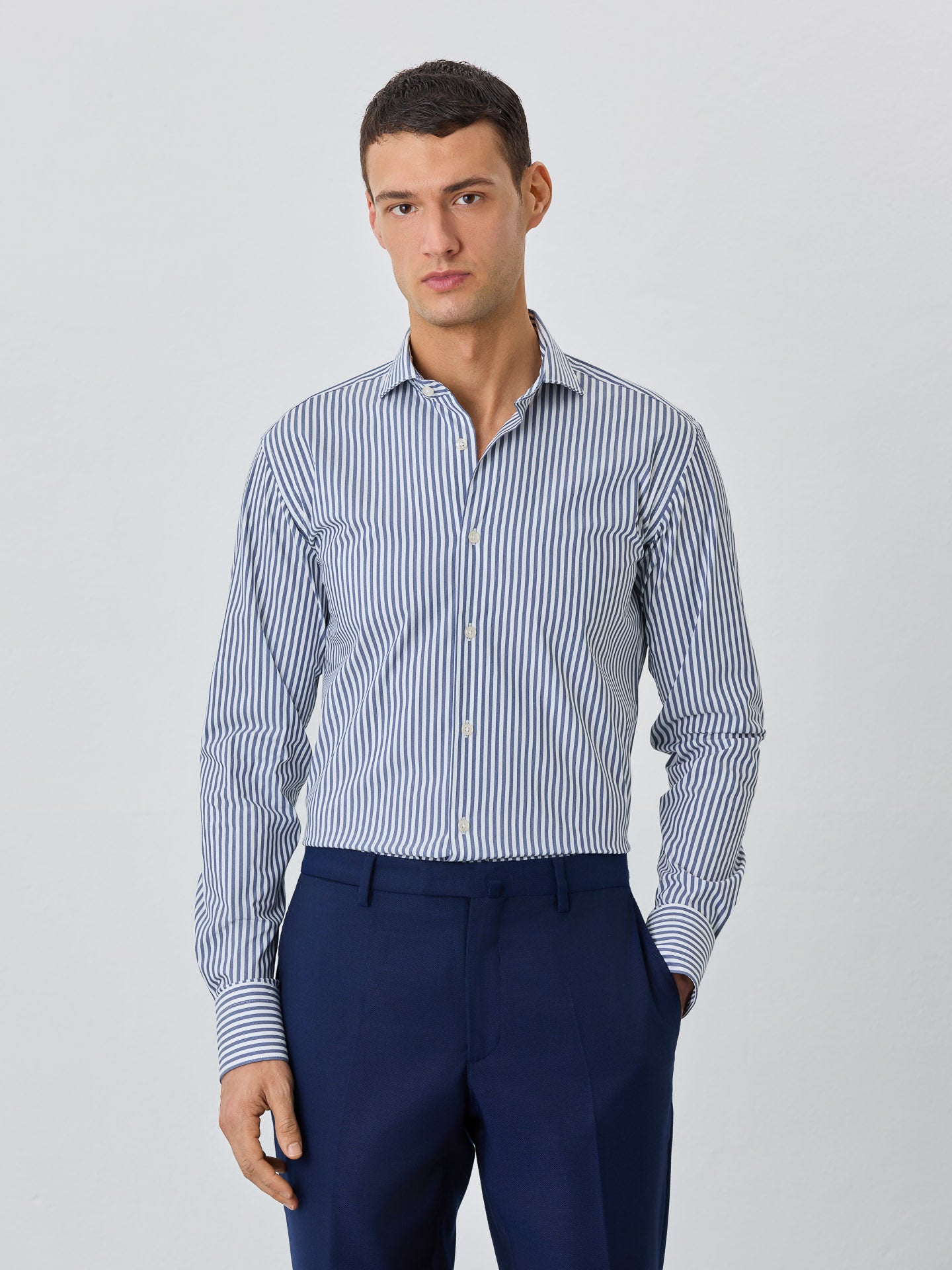 Slim Fit Shirt With Dublin Collar In Cotton Blend With Stripes