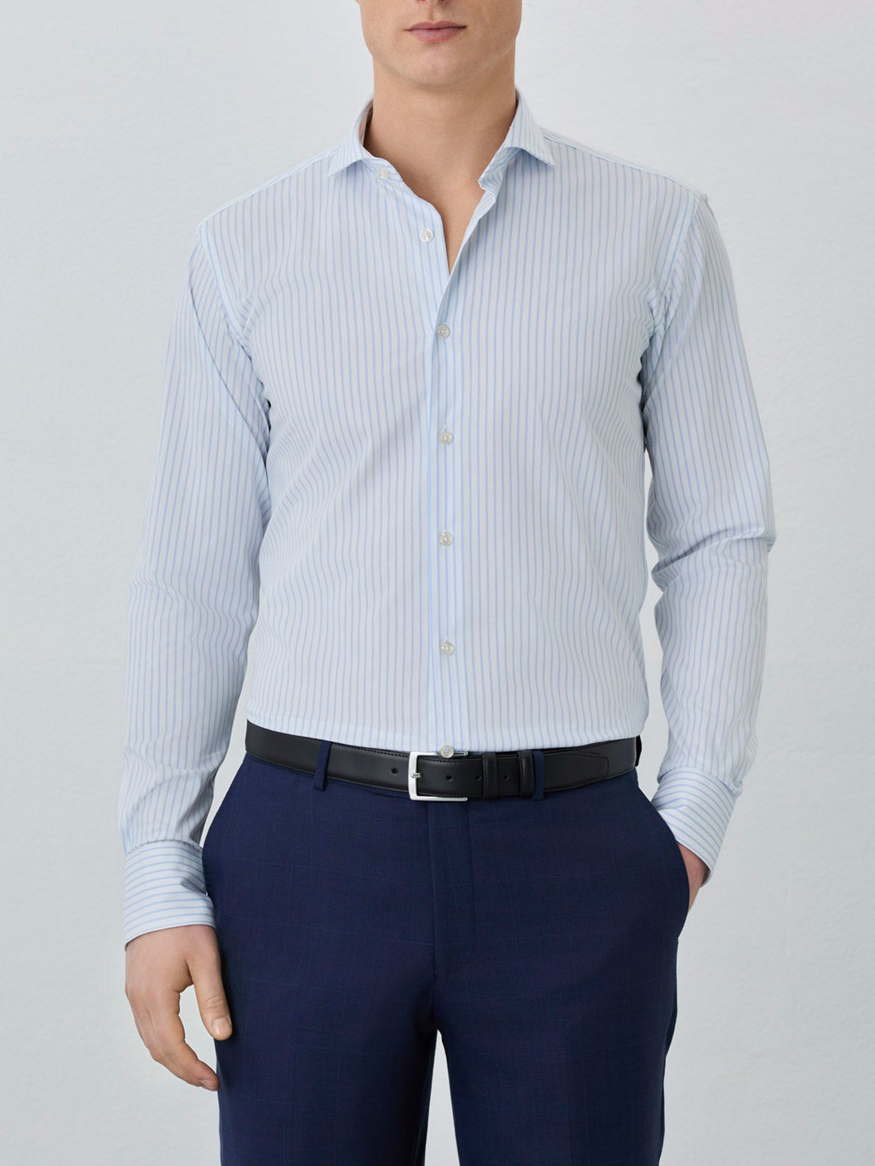 Slim Fit Shirt With Dublin Collar In Cotton Blend With Stripes
