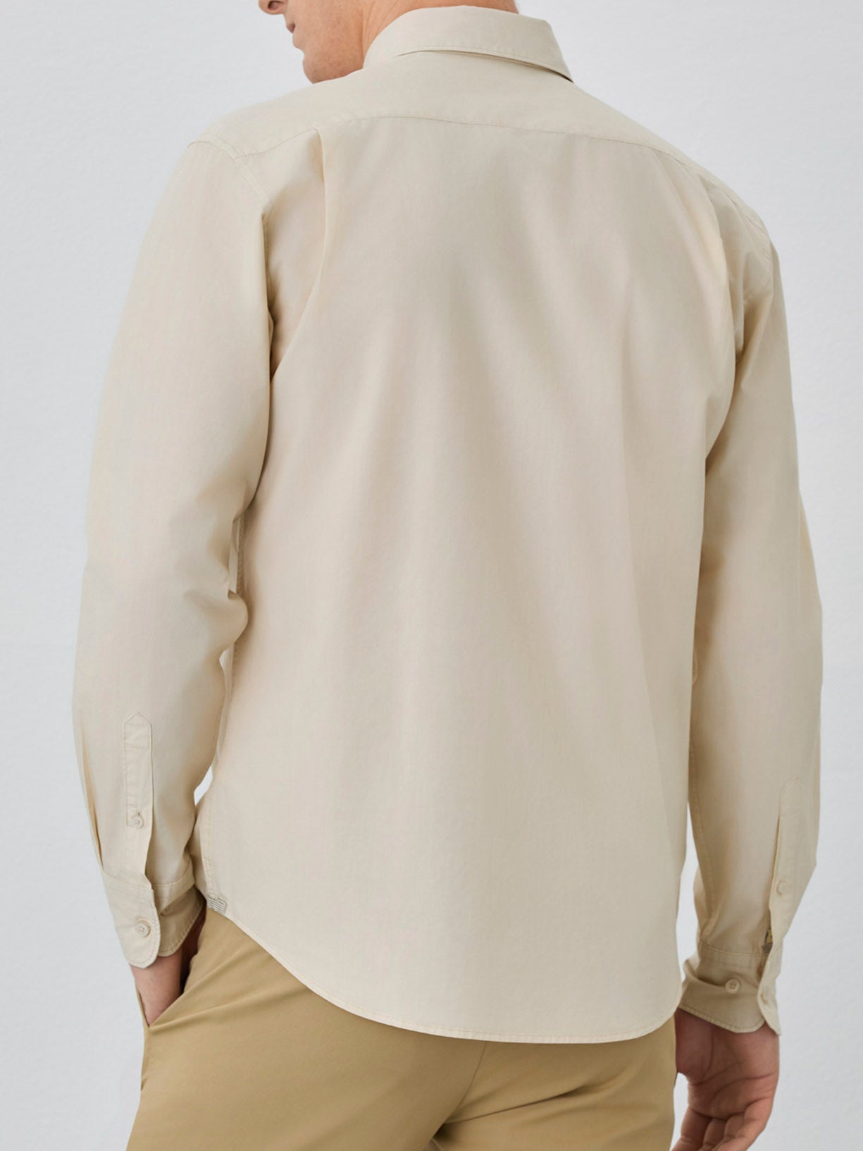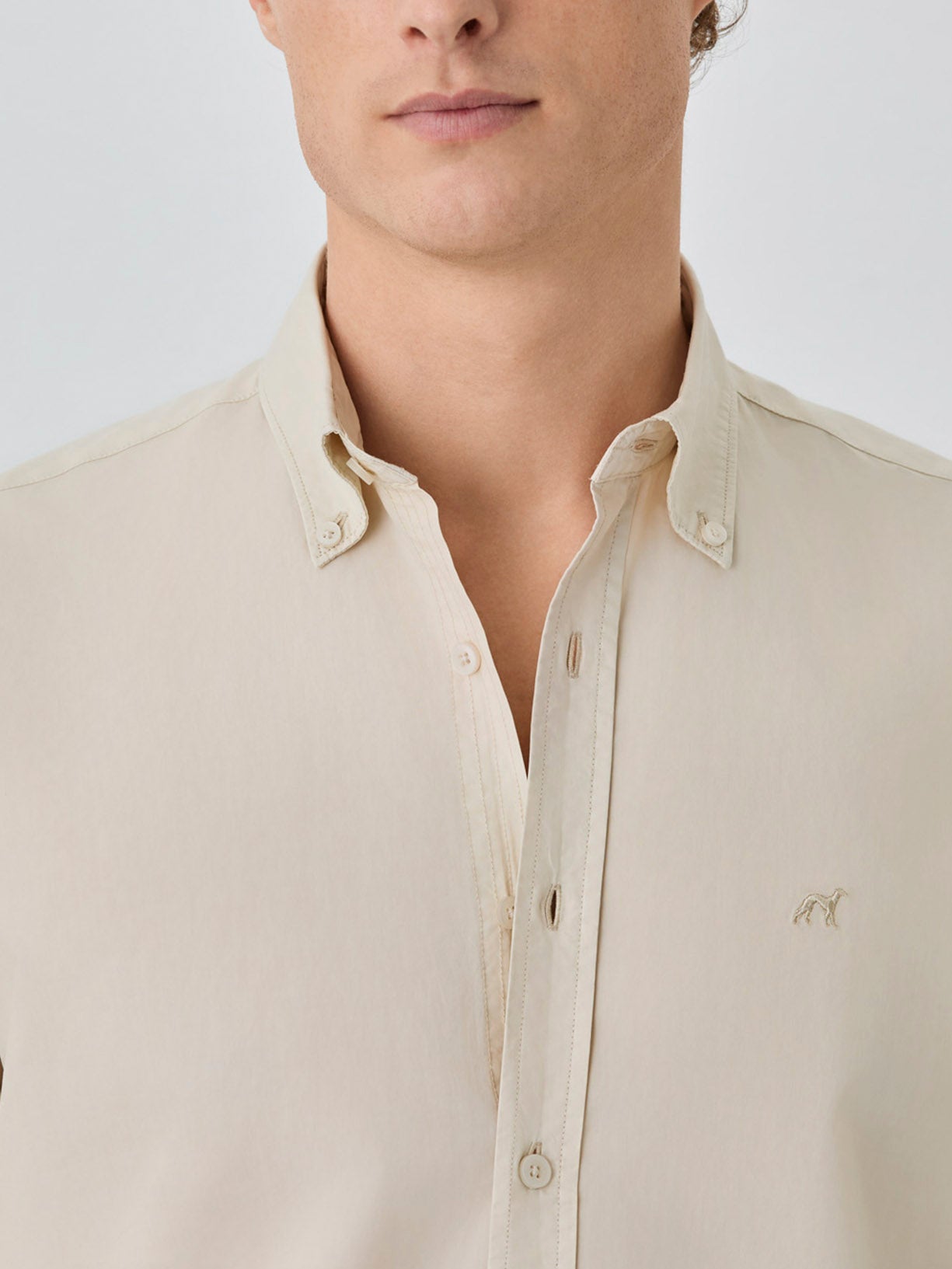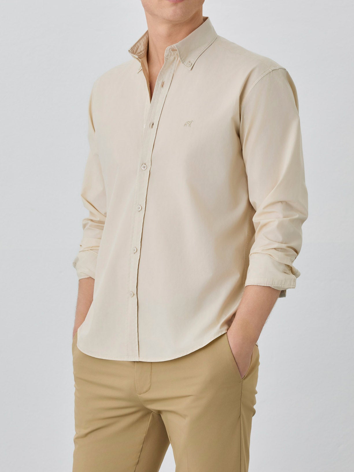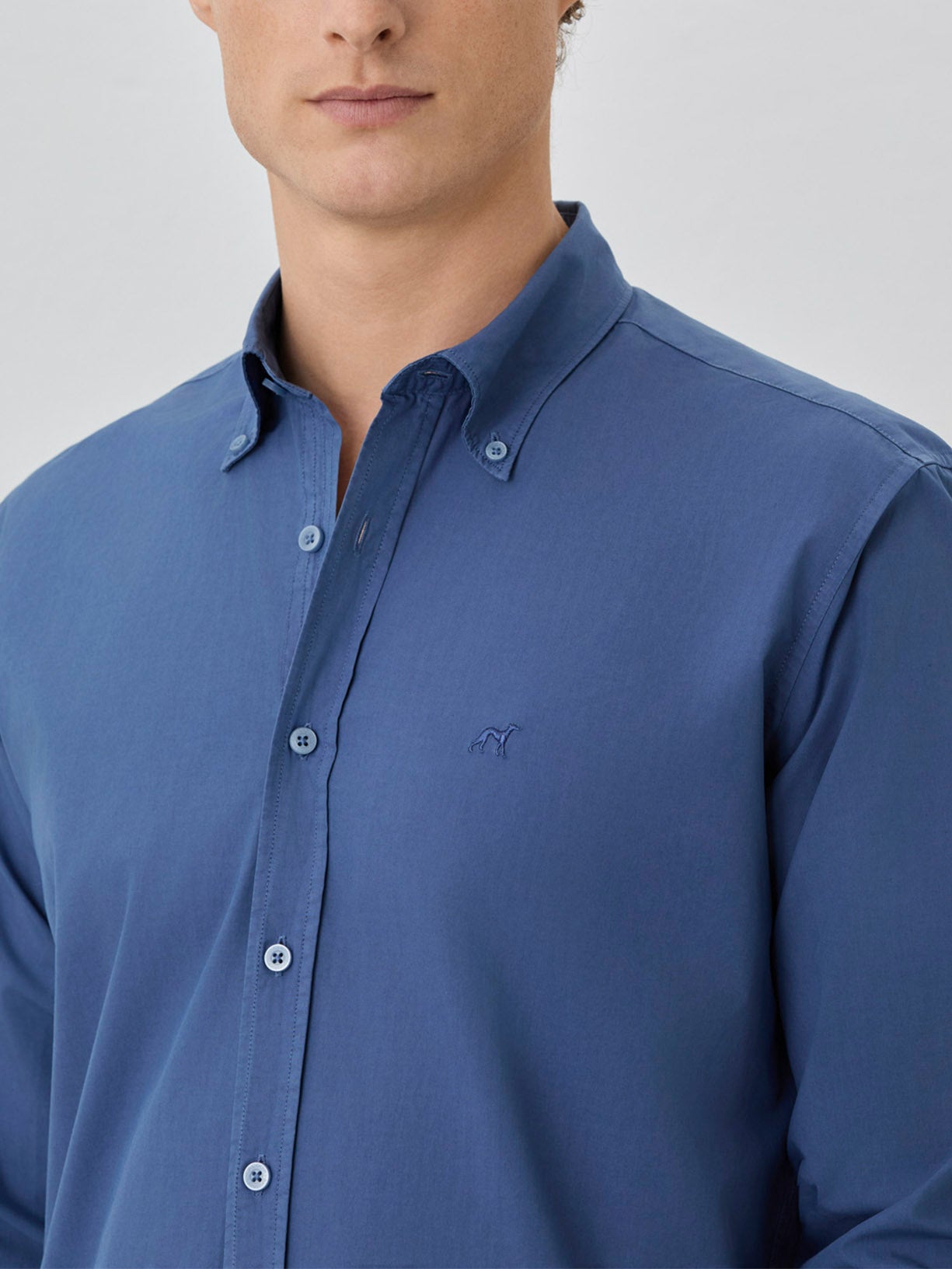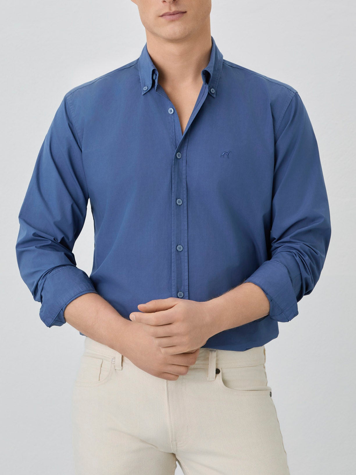Sport over dye shirt in plain poplin. Fabric made of 100% cotton. Featuring regular fit, button-down collar and front button-up fastening. Long sleeves with single cuffs with 2 buttons. Chest logo embroidery matching fabric.