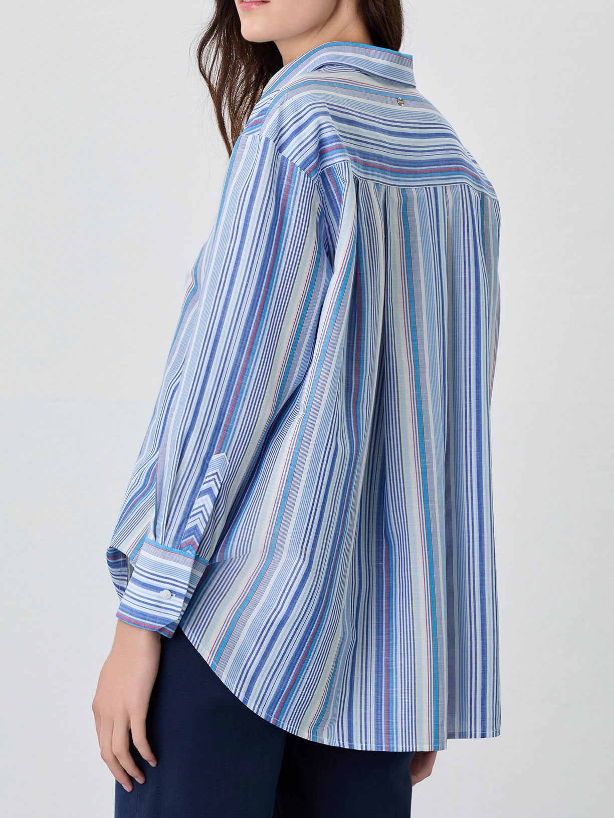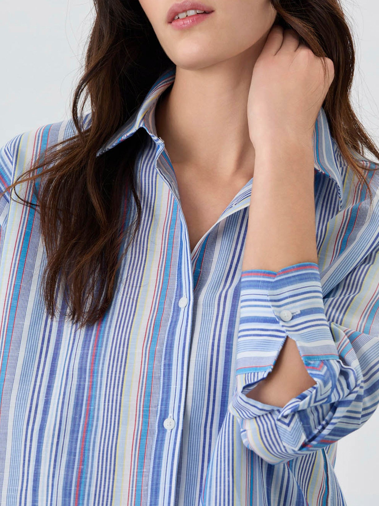 Loose Fit Shirt In Cotton Linen Blend With Stripes
