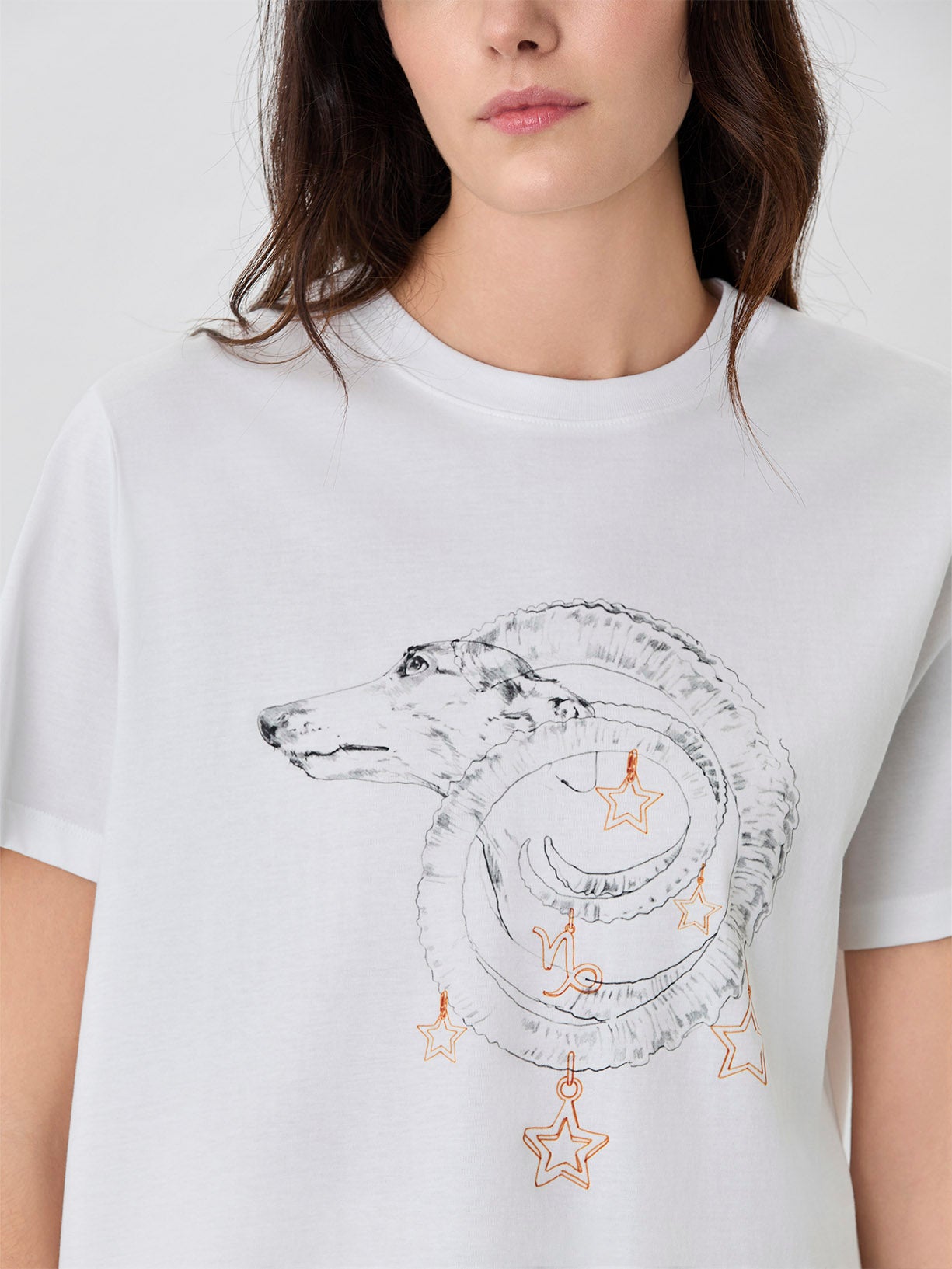 Regular fit Capricorn t-shirt from our Special Edition Zodiac Capsule collection. Made in organic cotton with a Capricorn Sign illustration by the renowned Portuguese Fashion Illustrator Antonio Soares. This special collaboration with Antonio Soares, brought to life a fresh representation of the zodiac signs trough our greyhound logo, mixing the classic image with fun and colorful details for a more contemporary look. Features a round neckline and short sleeves.