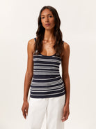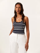 Tank top in a cotton blend with a U-shape neckline at the front and back, with a deeper cut at the back. Ribbed collar and armholes, and the hem is finished with a tubular trim. Features all-over contrasting stripes and the brand's metal plate at the back.