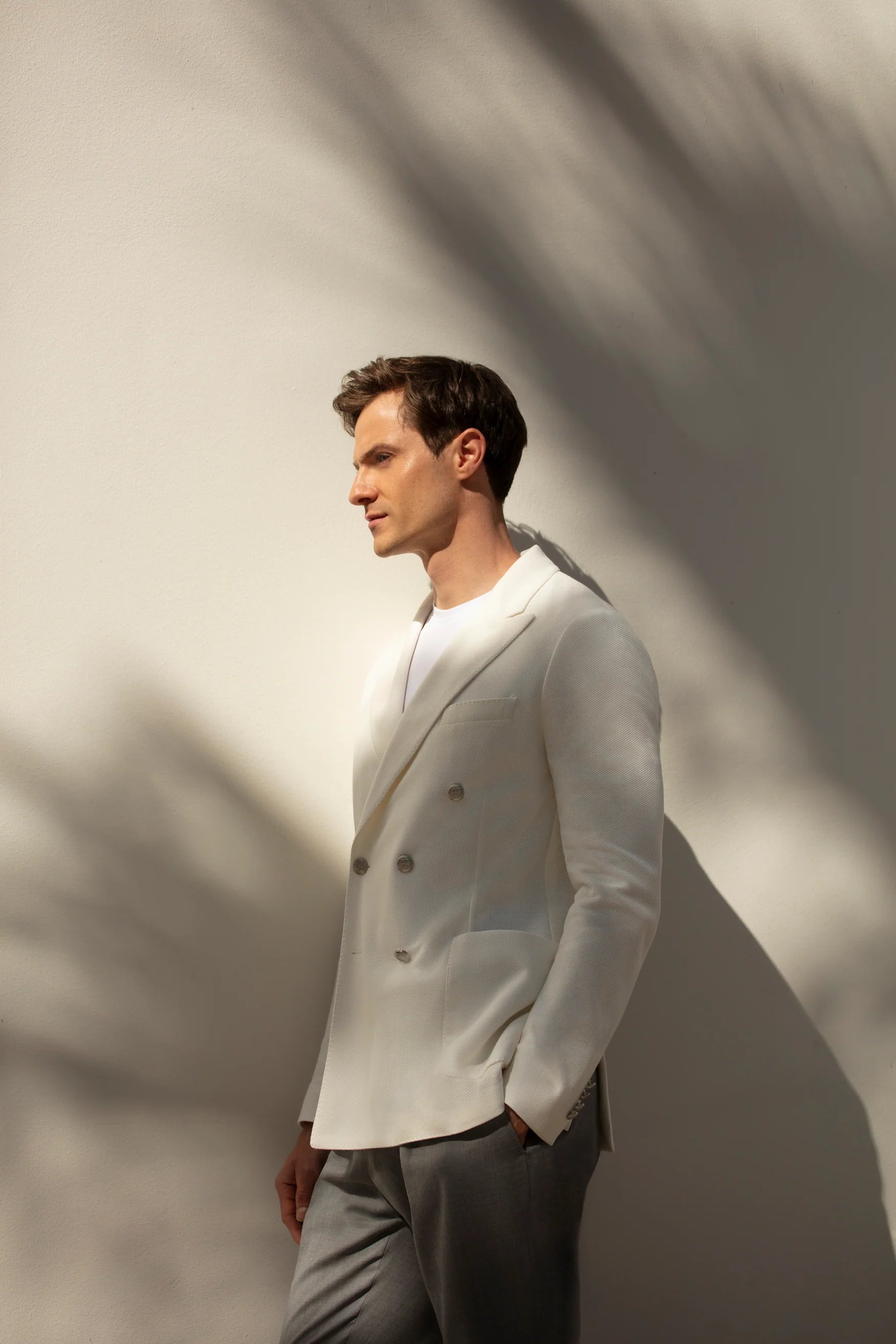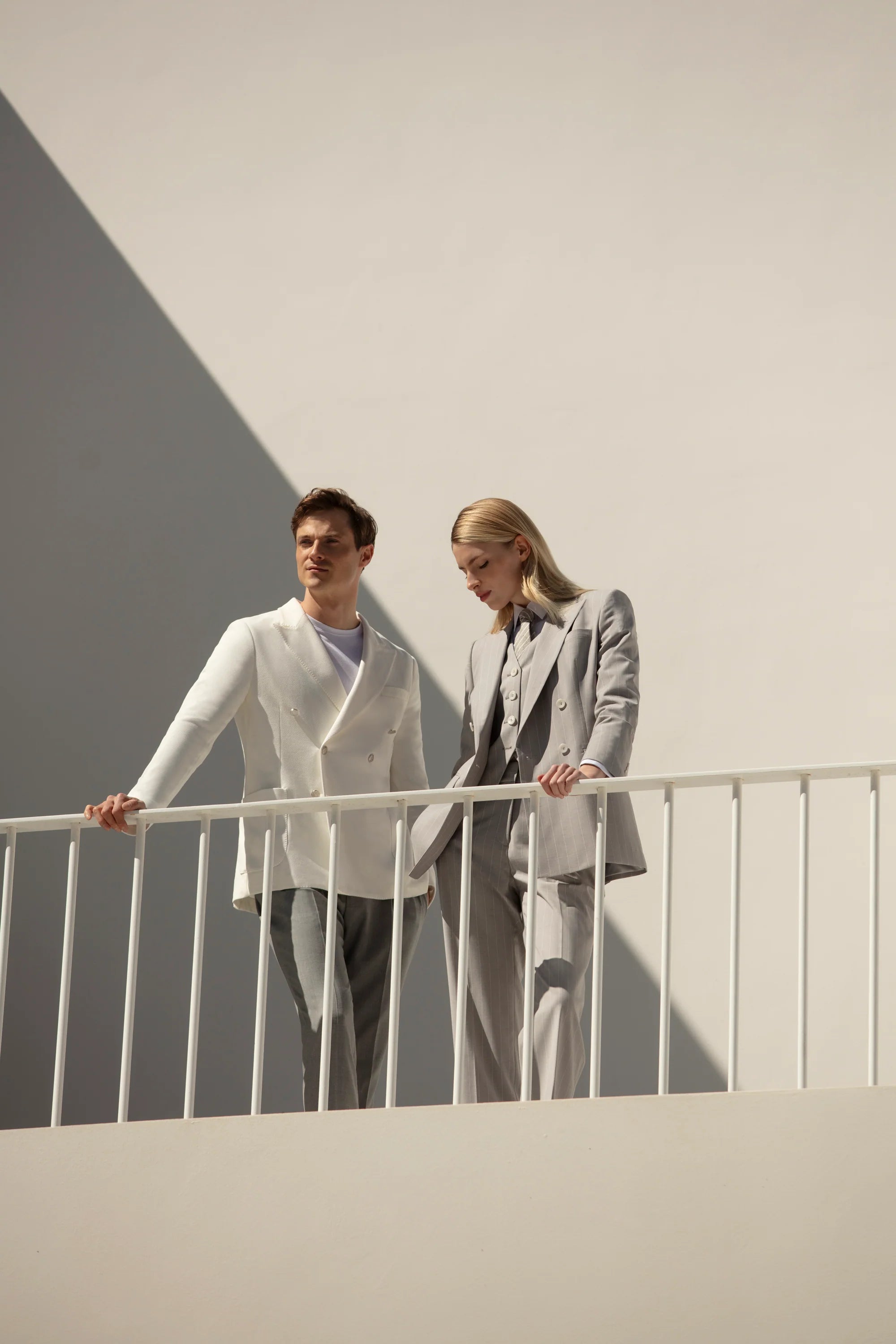 Sacoor Brothers reinterprets heritage with a contemporary aesthetic language. Details inspired by traditional tiles and handcrafted finishes coexist with precise, modern and refined tailoring. It is in this fusion of tradition and avant-garde that true luxury lies: dressing with history, but withan eye firmly on the future.