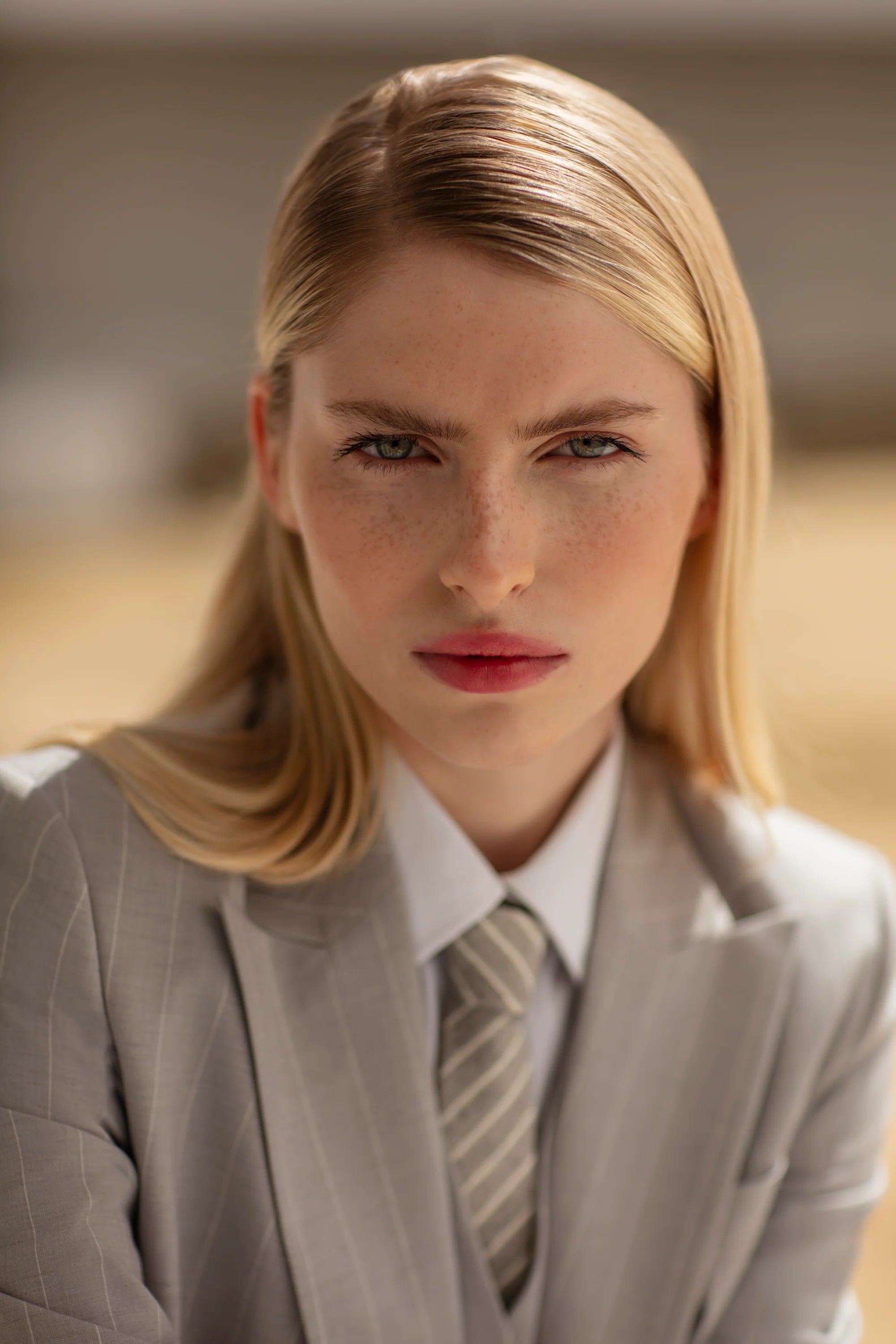 The cool, neutral tones evoke the sobriety of stone and concrete, while the refined cuts and technical fabrics convey an urban sophistication designed for modern everyday life.