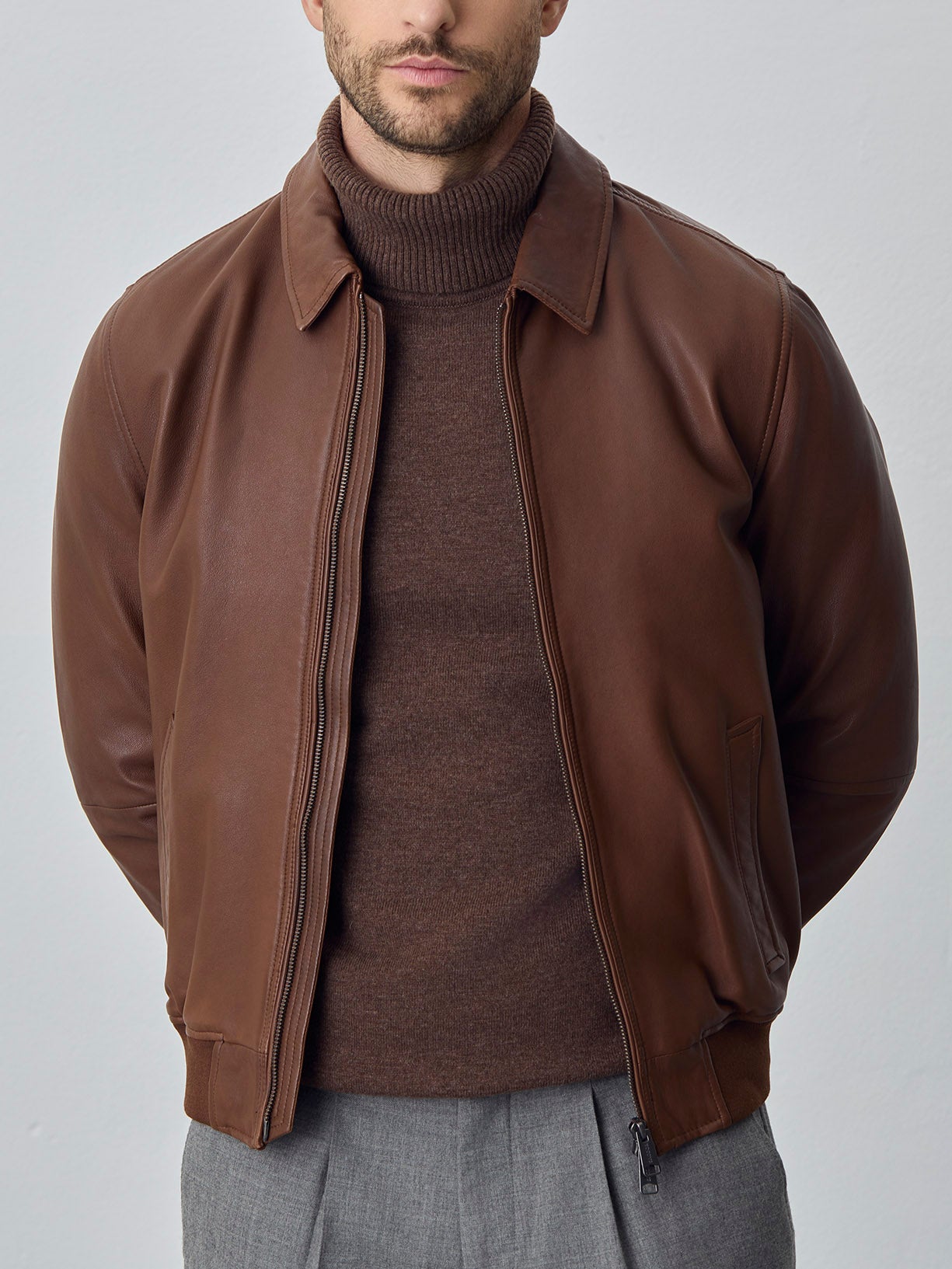Leather bomber jacket