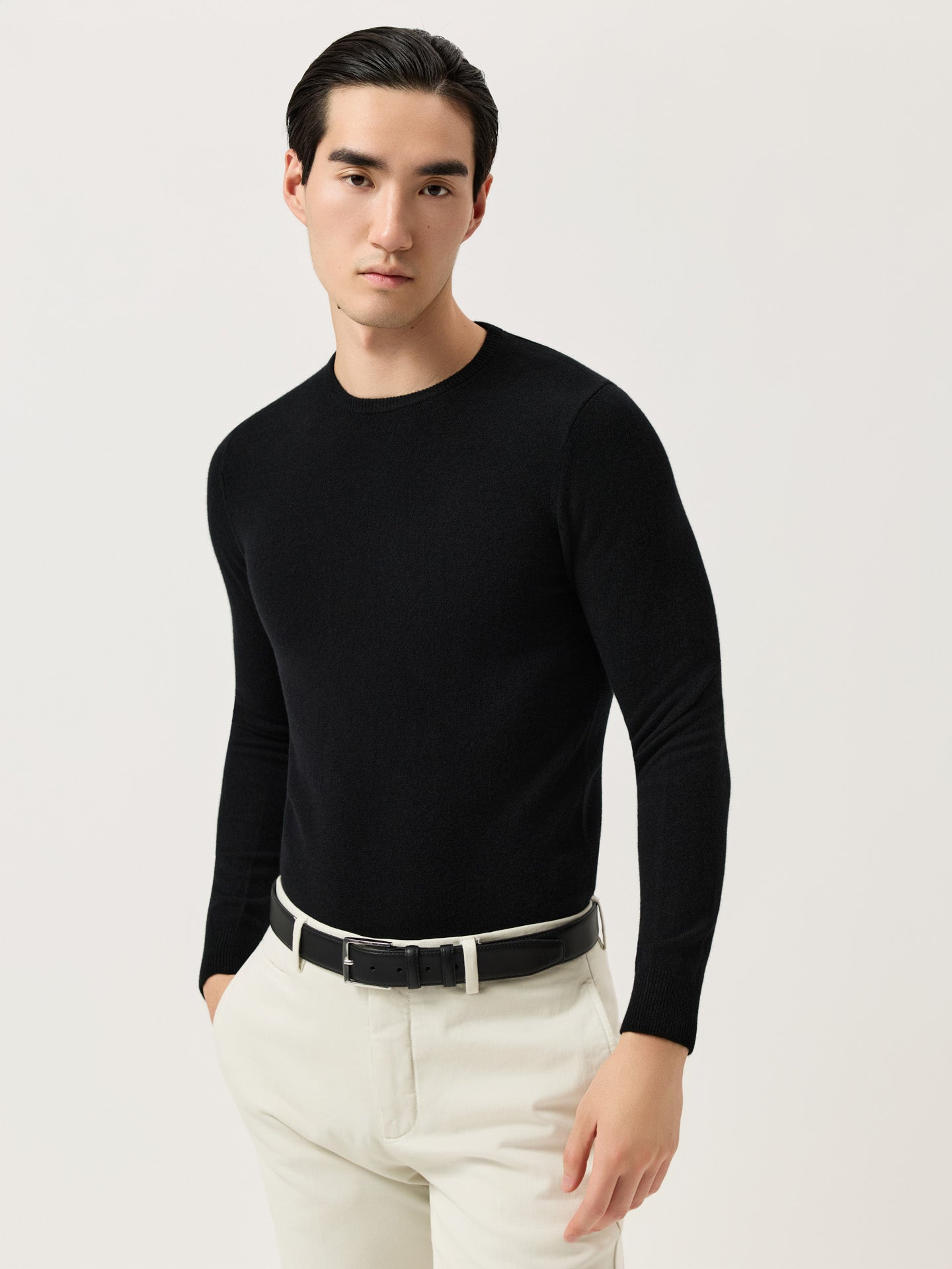Long Sleeve Crew Neck Sweater In Fine Lambswool