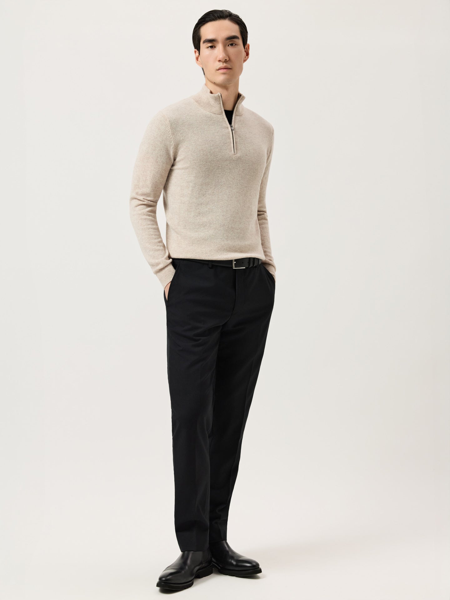 Long Sleeve Half-Zip Sweater In Fine Lambswool