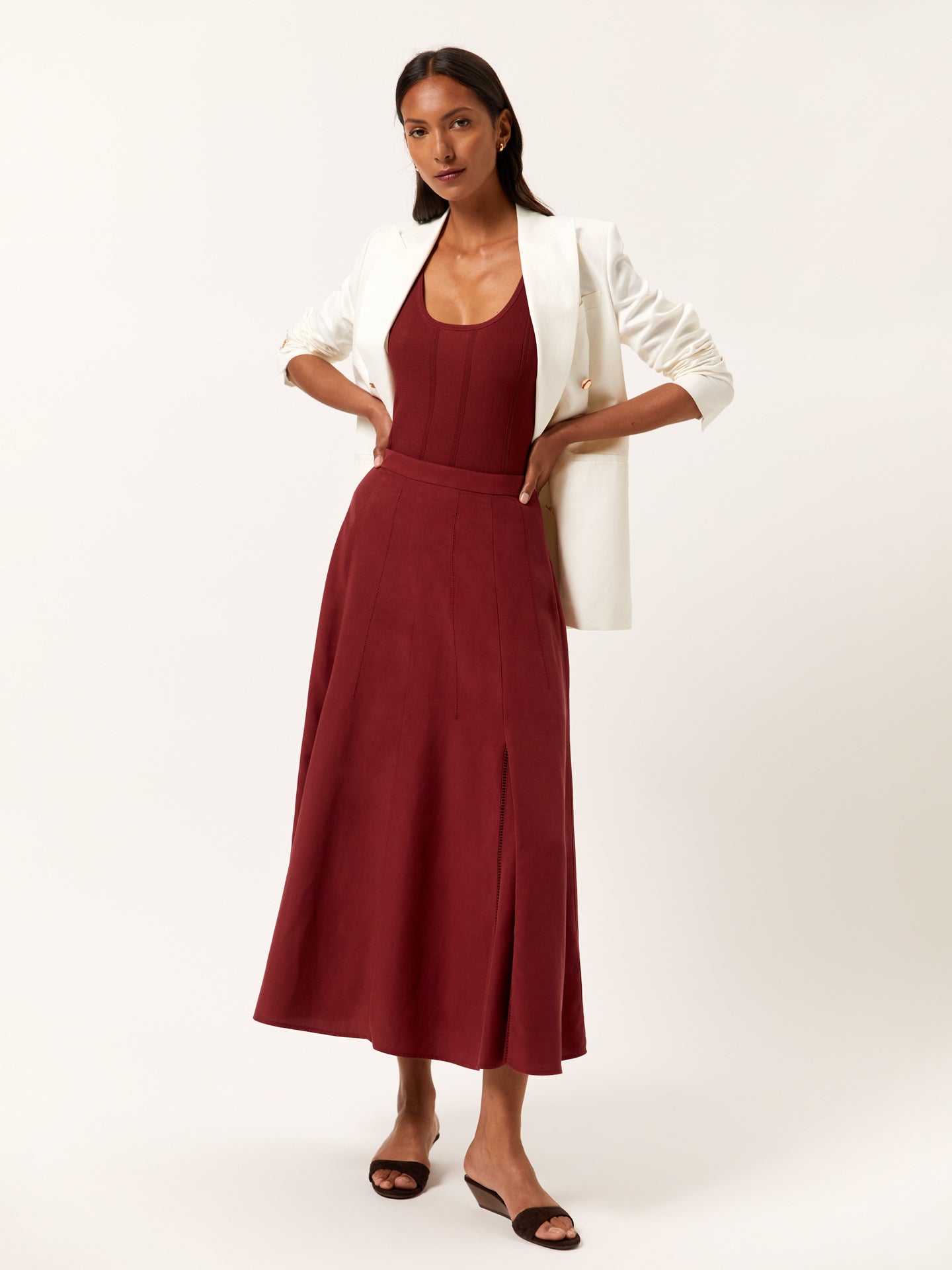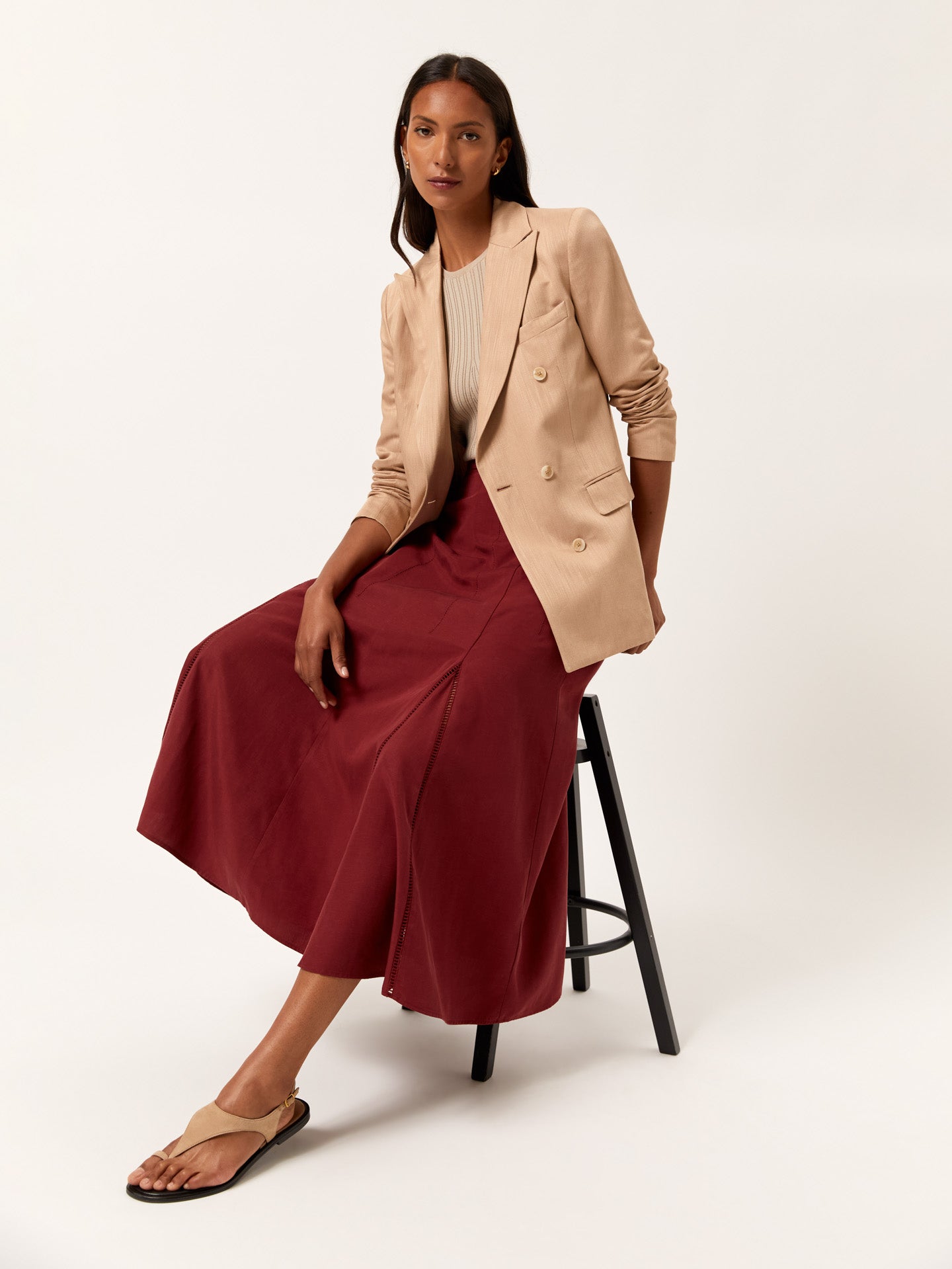 Midi Skirt In Tencel & Linen Blend With Embroidery