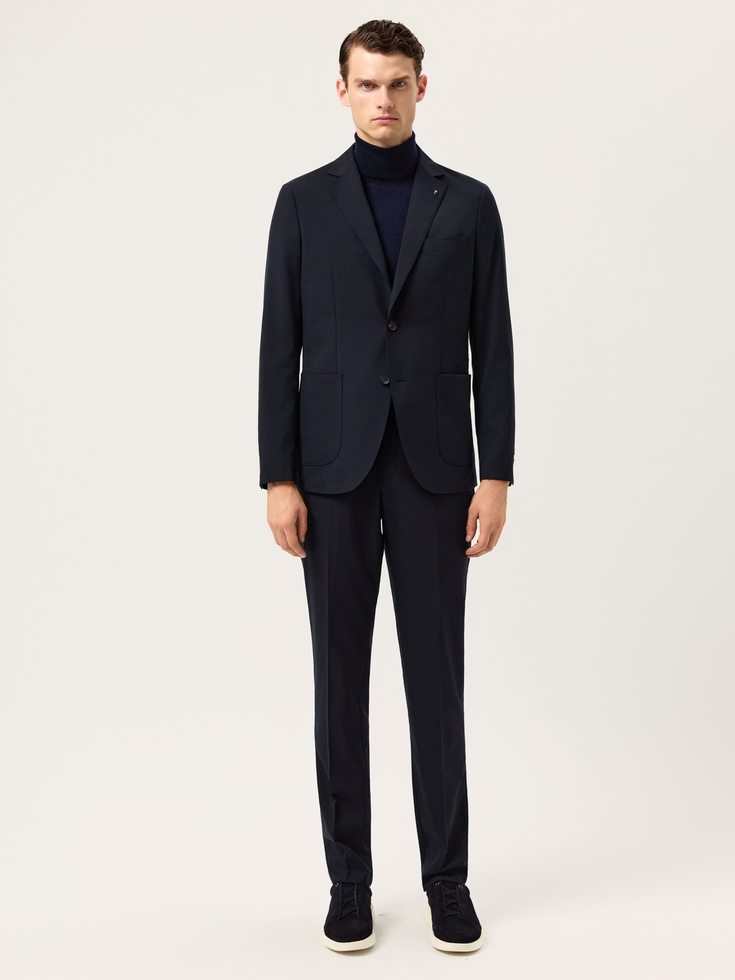 The men's suits from Sacoor Brothers are available with 'Drop 5' and 'Drop 6'. This designation refers to the difference between the blazer size and the trouser size. When ordering a size 46 with 'Drop 5', the trousers will be around size 41, while 'Drop 6' will result in trousers of size 40.