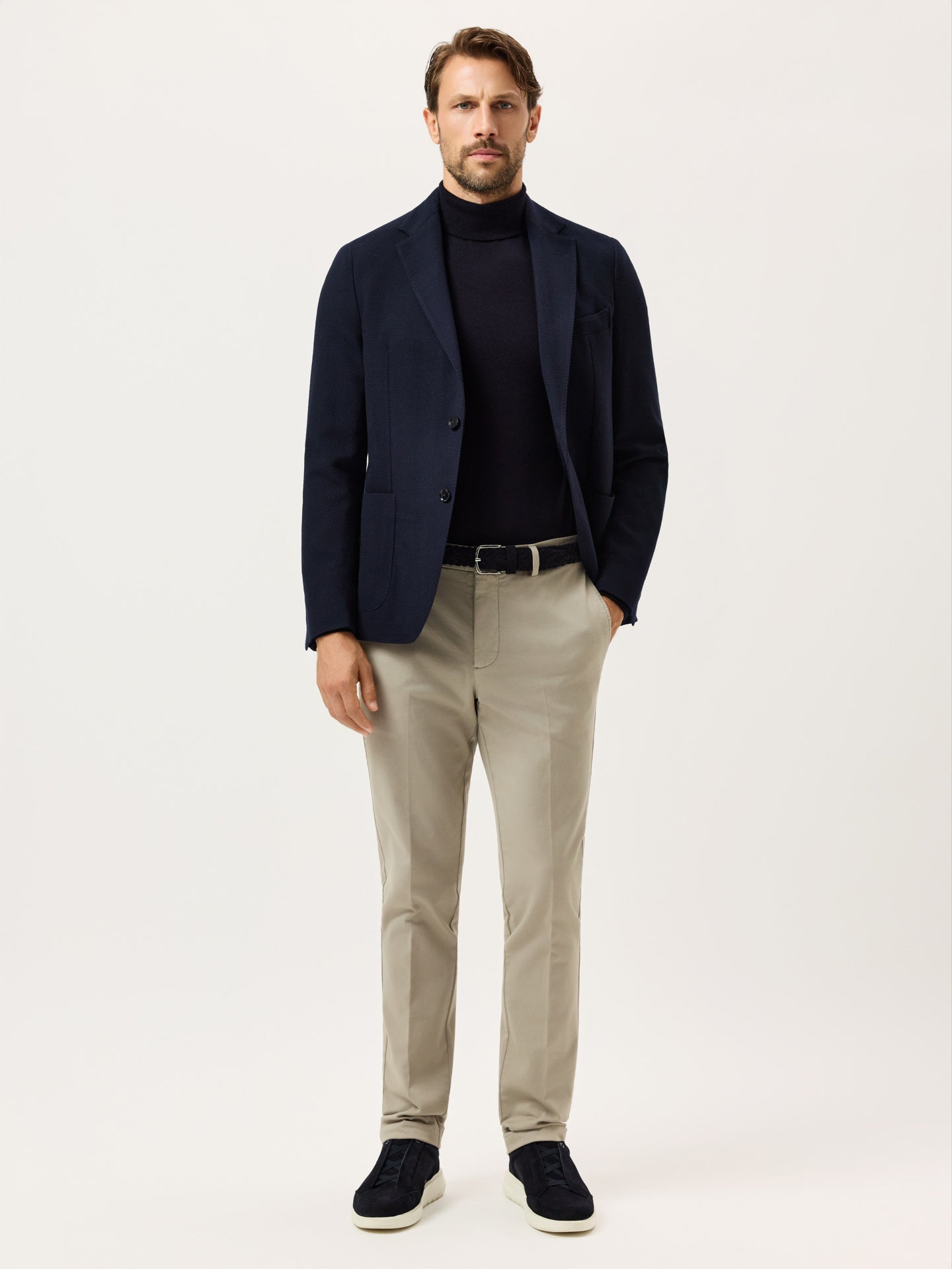 The men's suits from Sacoor Brothers are available with 'Drop 5' and 'Drop 6'. This designation refers to the difference between the blazer size and the trouser size. When ordering a size 46 with 'Drop 5', the trousers will be around size 41, while 'Drop 6' will result in trousers of size 40.