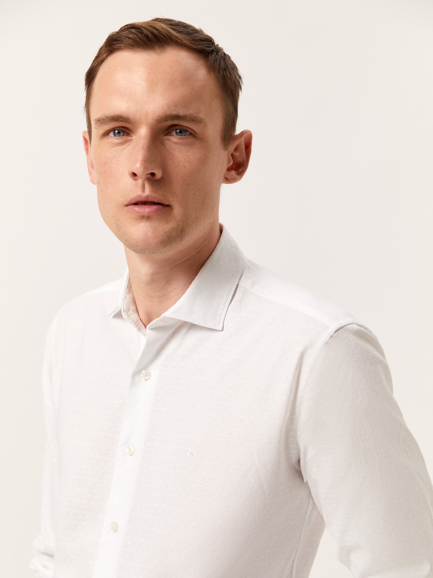 Slim Fit Pattern Jacquard Cotton Linen Shirt with Open Collar